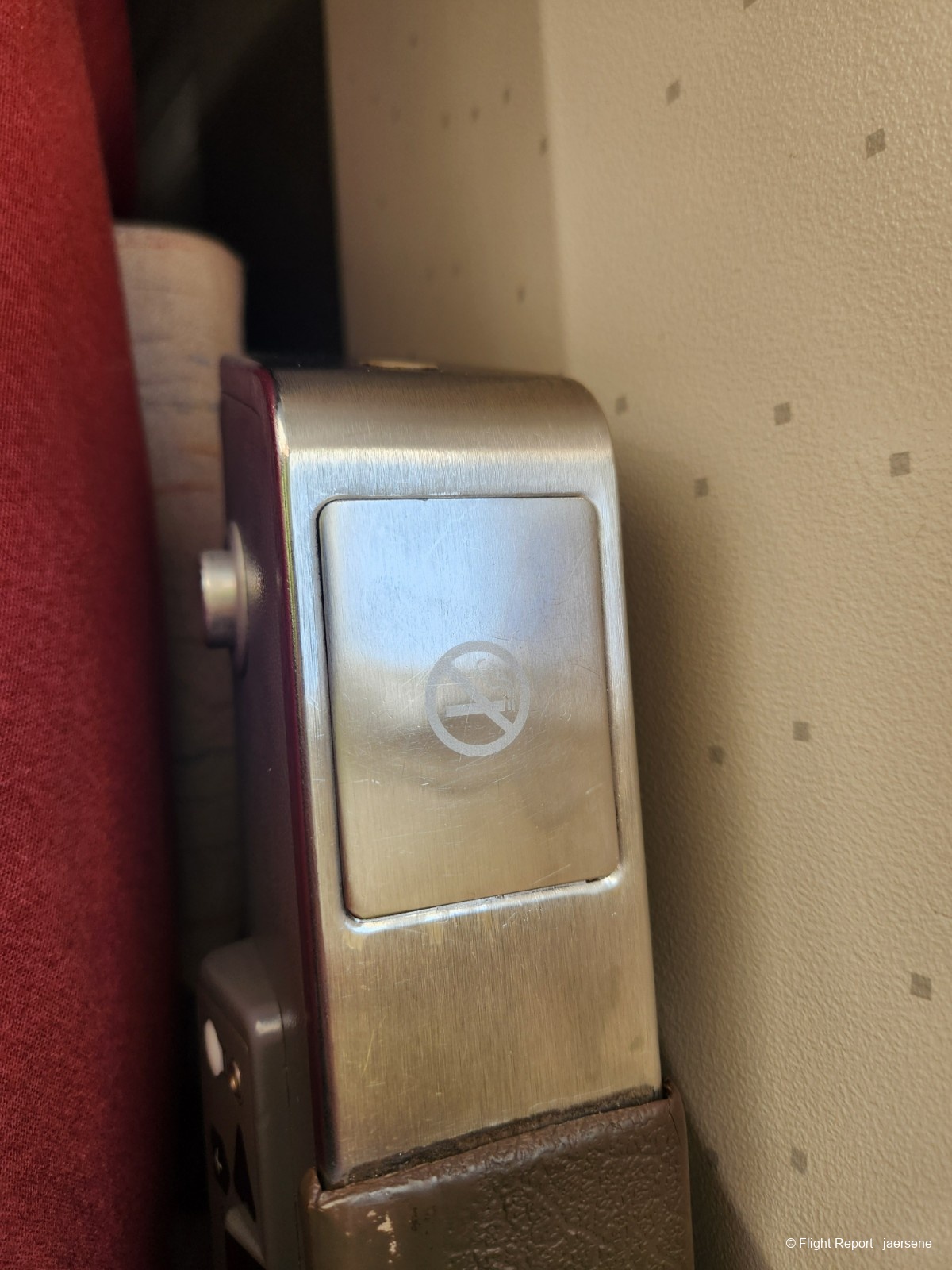 You can see the classic seats fitted on the 767, which I presume to be the original seats from when it was first delivered in the 1990s. It is also uniquely, in the modern era, fitted with ashtrays on the armrests. I presume it was for when smoking on planes were allowed.