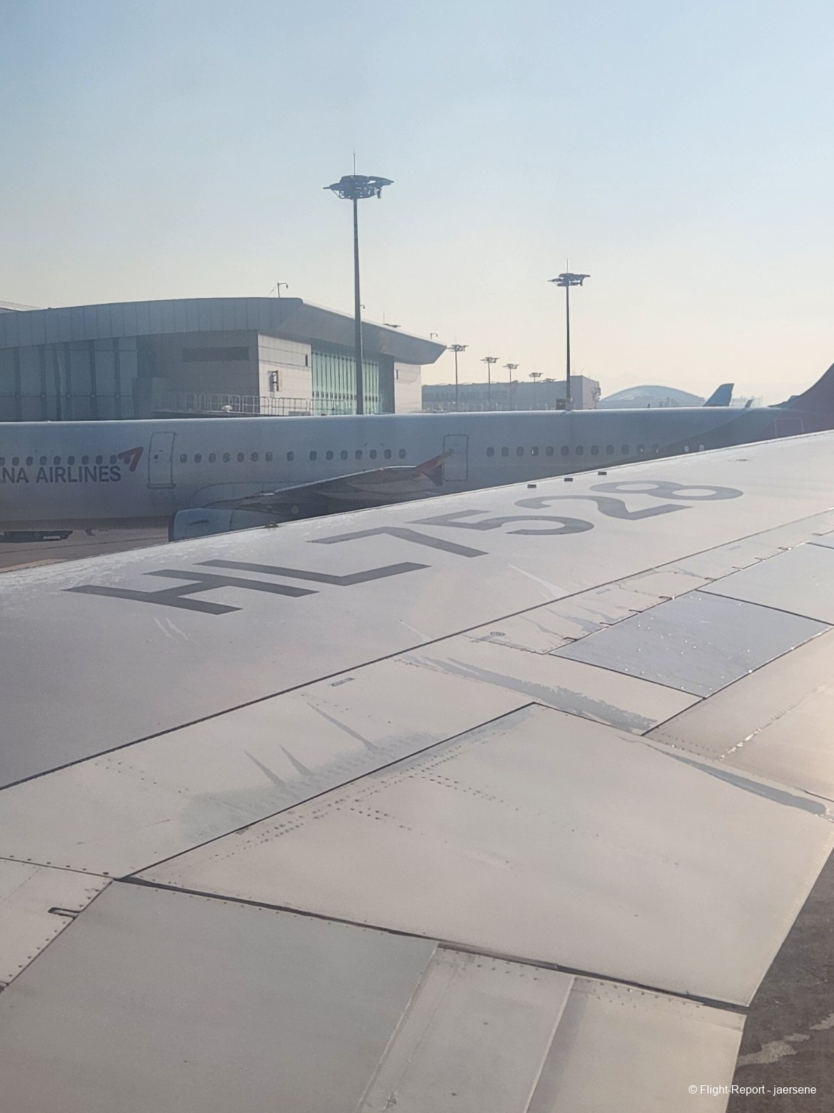 Welcome to Jeju! I struggled with glare from the window all throughout the flight so this picture came out a bit blurry. I wanted to get the CJU sign with the registration on the wing as it would be a sight that wouldn't be seen in just a few months.