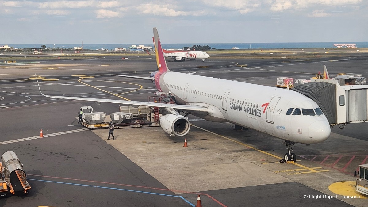 You can see the old Asiana Airlines logo with the red mark on the top right. That would be another sight not to be seen as the merger with Korean Air and copyright with the previous parent company which had the red mark prohibited Asiana from using the mark on anything.