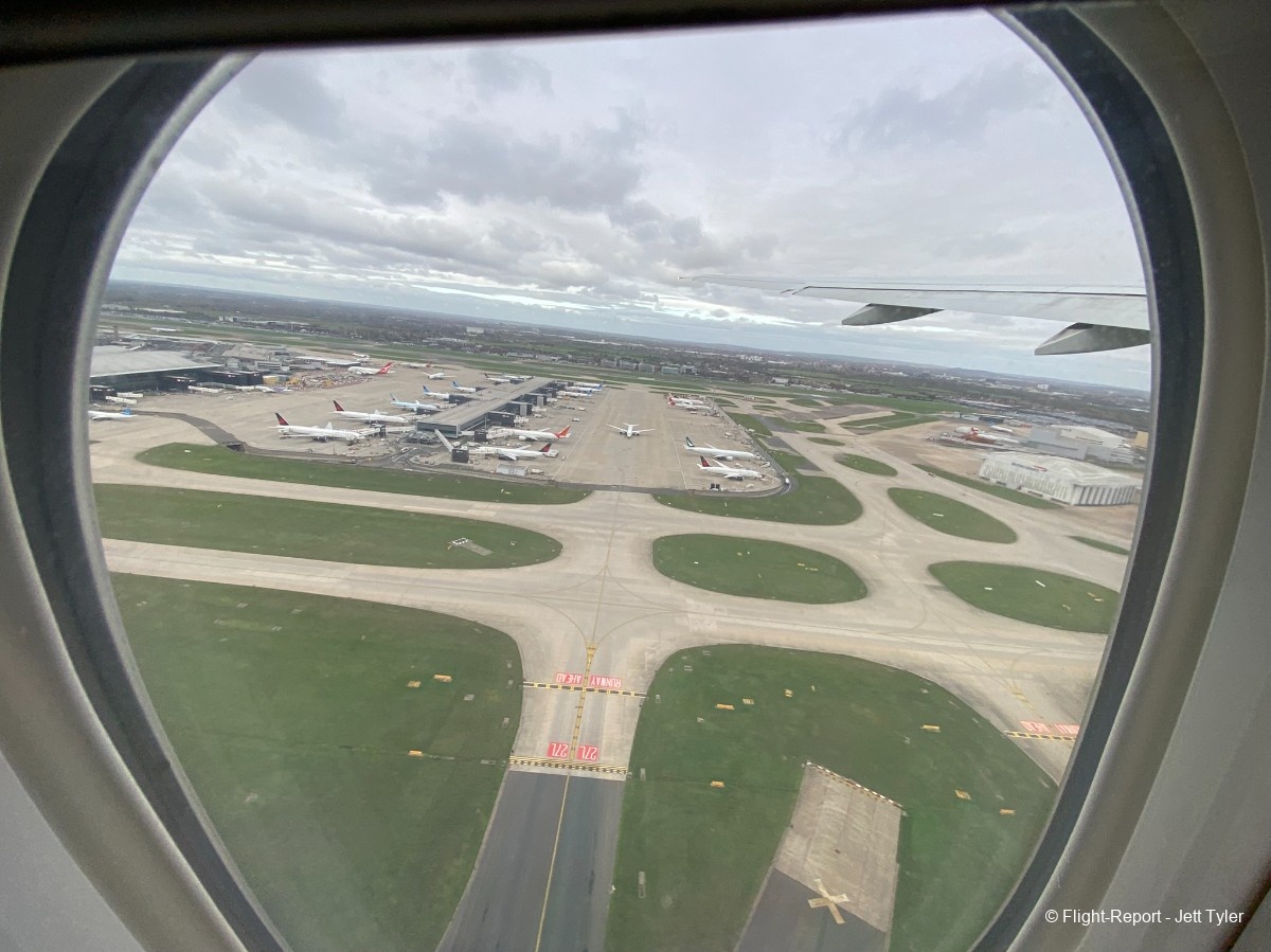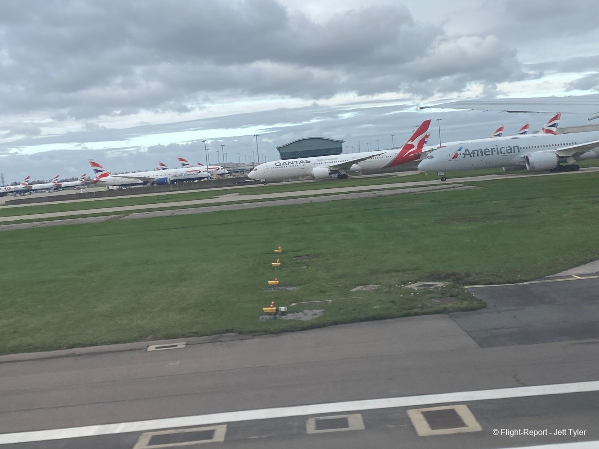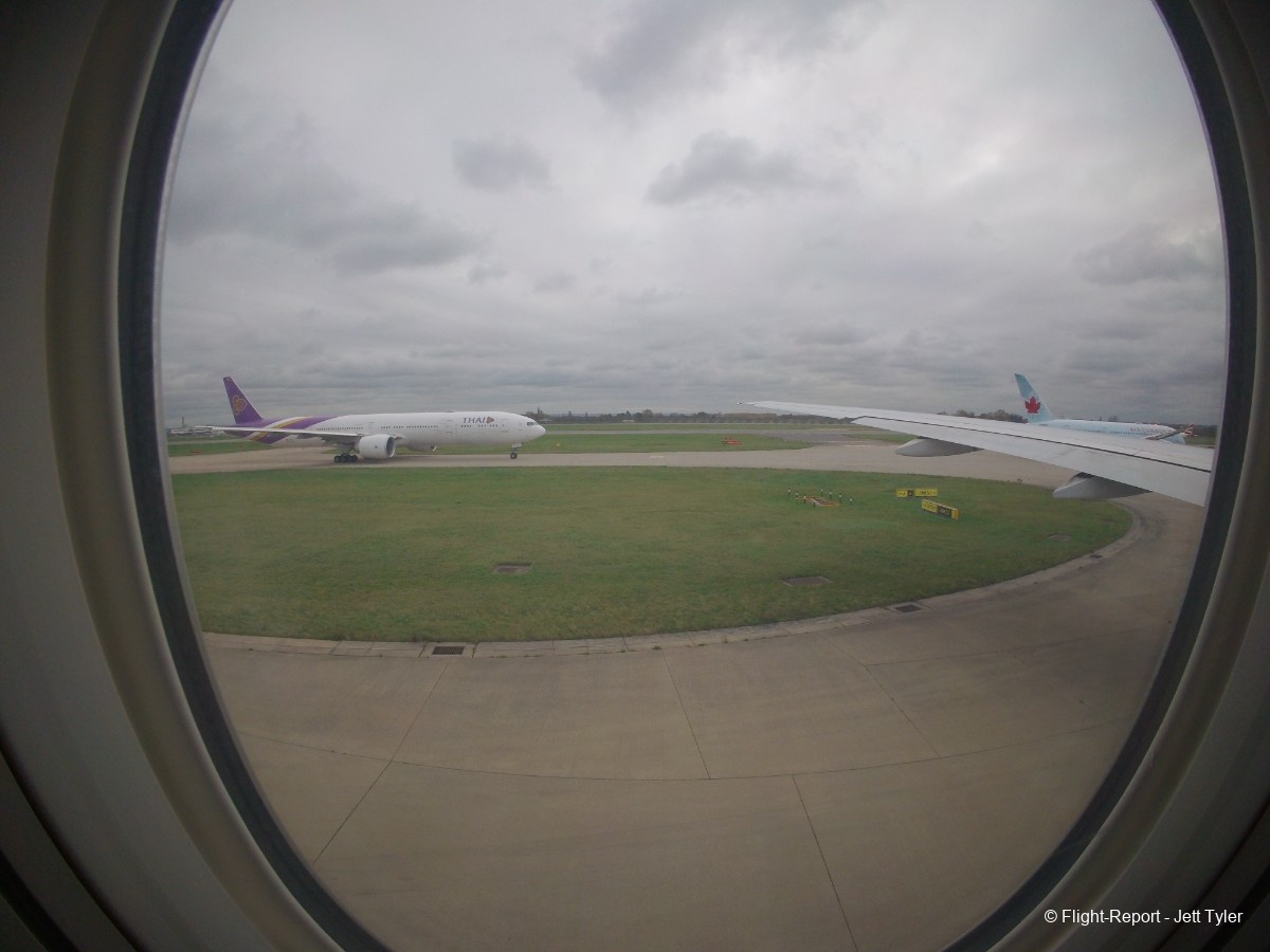 As we made the short taxi over to the departure runway, which that afternoon was Runway 09R, we passed various other British Airways long-haul aircraft including the Airbus A380 and a few more Boeing 777s and Boeing 787s. We were prioritised ahead of an Air Canada Boeing 787-8 heading to Ottawa and a Thai Airways Boeing 777-300ER heading to Bangkok for a sharp departure for Canada, also behind them in the que I could see a pair of American Airlines aircraft (Boeing 777-200ER & Boeing 787-8) as well as a Virgin Atlantic Boeing 787-9 all coming from Terminal 3.