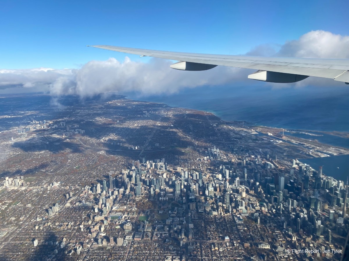 Eventually our descent into Toronto began, our arrival bought us in over Downtown Toronto before making a turn over Lake Ontario. As we approached Toronto, I spotted an Airport which turned out to be the recently closed down Toronto/Buttonville Municipal Airport- Which used to be one of the main Airport's serving Toronto before the construction of Toronto Pearson and Toronto City "Billy Bishop".