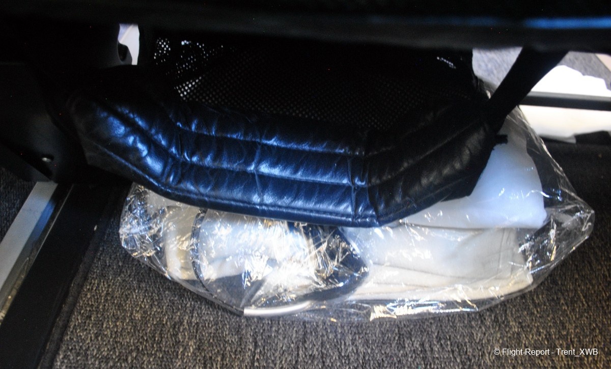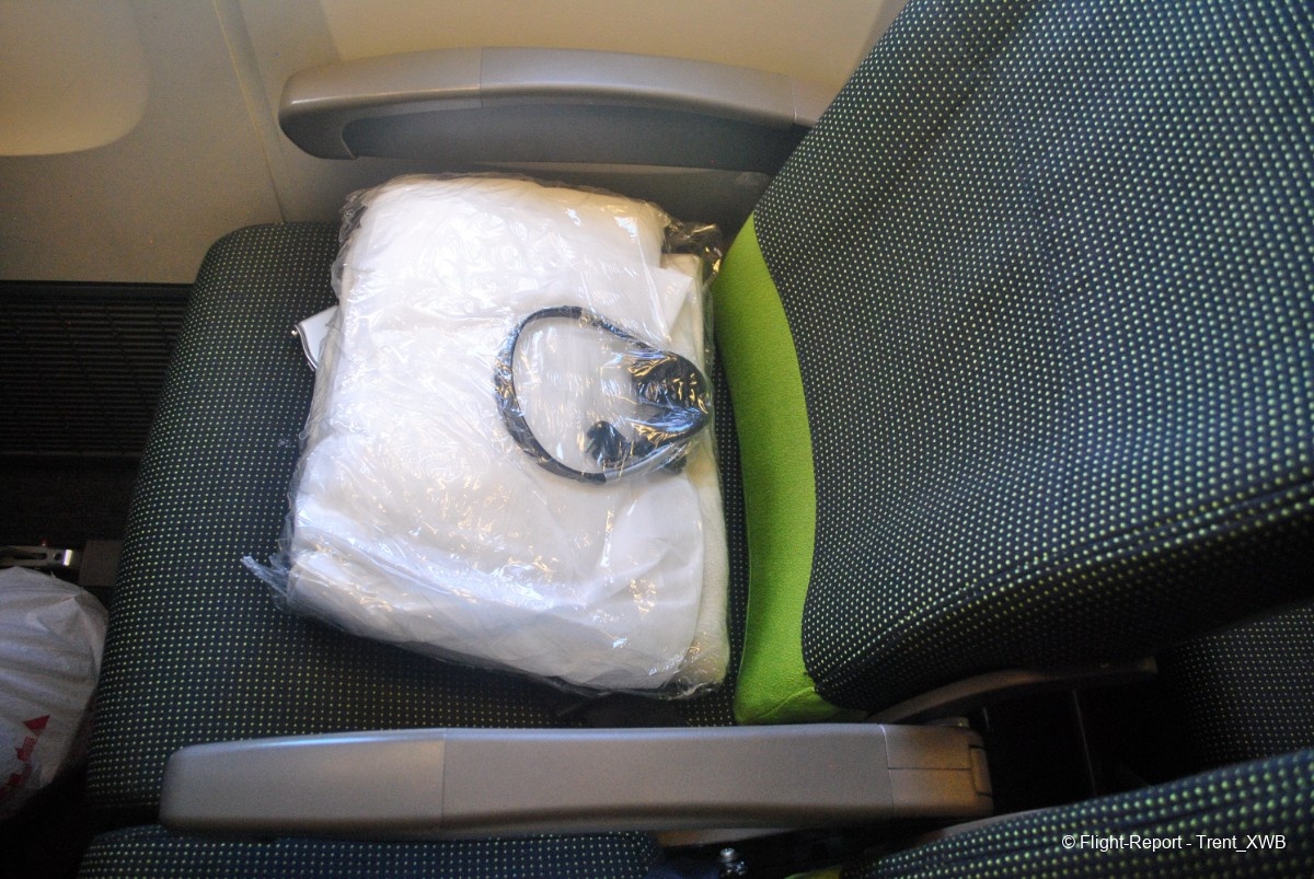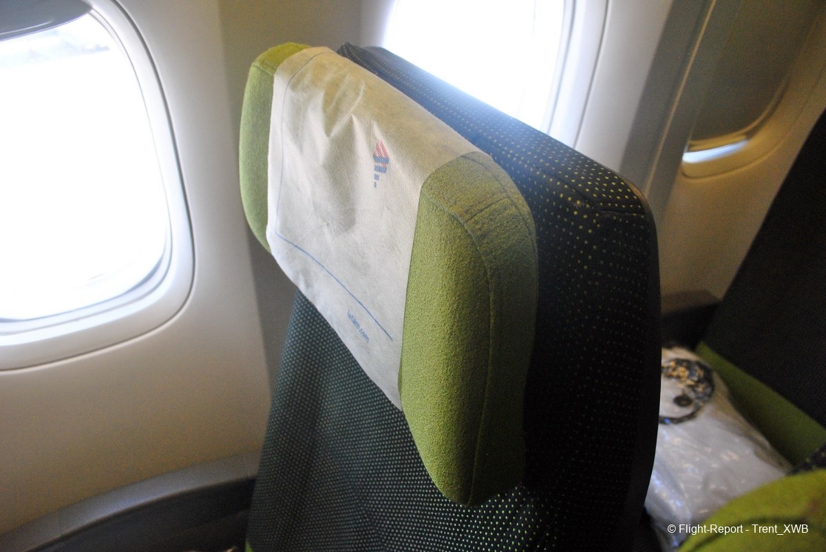 My seat 39K was located in the front part of the rear economy cabin. The seat model reminds Safran Z300, but I guess it was Zodiac-branded back in 2012. I didn't measure the seatwidth, but it's apparent that economy seat with full-sized armrests cannot be wider than 17.0" in 3-4-3 B777. The seat had ample padding and felt comfortable, especially for this 3.5-hour mid-haul flight. The seatpitch was quite good. The seat had fabric upholstery, adjustable headrest, IFE with fixed-mounted screen and USB port, coat hanger, upper hard seat pocket, bi-fold tray table, lower soft seat pocket, soft legrest and universal power socket underseat (2 per 3 seats). Waiting on the seats were pillow, blanket and headset. And yes - flying in this economy from GRU to FRA will be way better than in abysmal Recaro economy of LH B748.