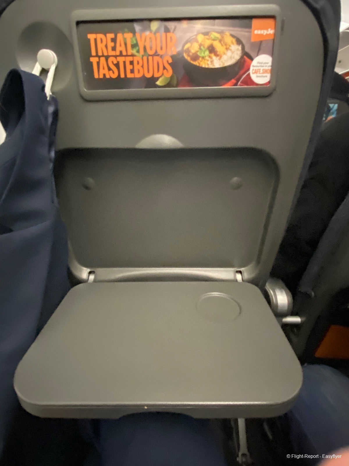 Boarding started quickly and we boarded via stairs at the front and rear. This Airbus a320 was fitted with Recaro seats, I find them quite comfortable but, in my opinion, the tray table is way too small.