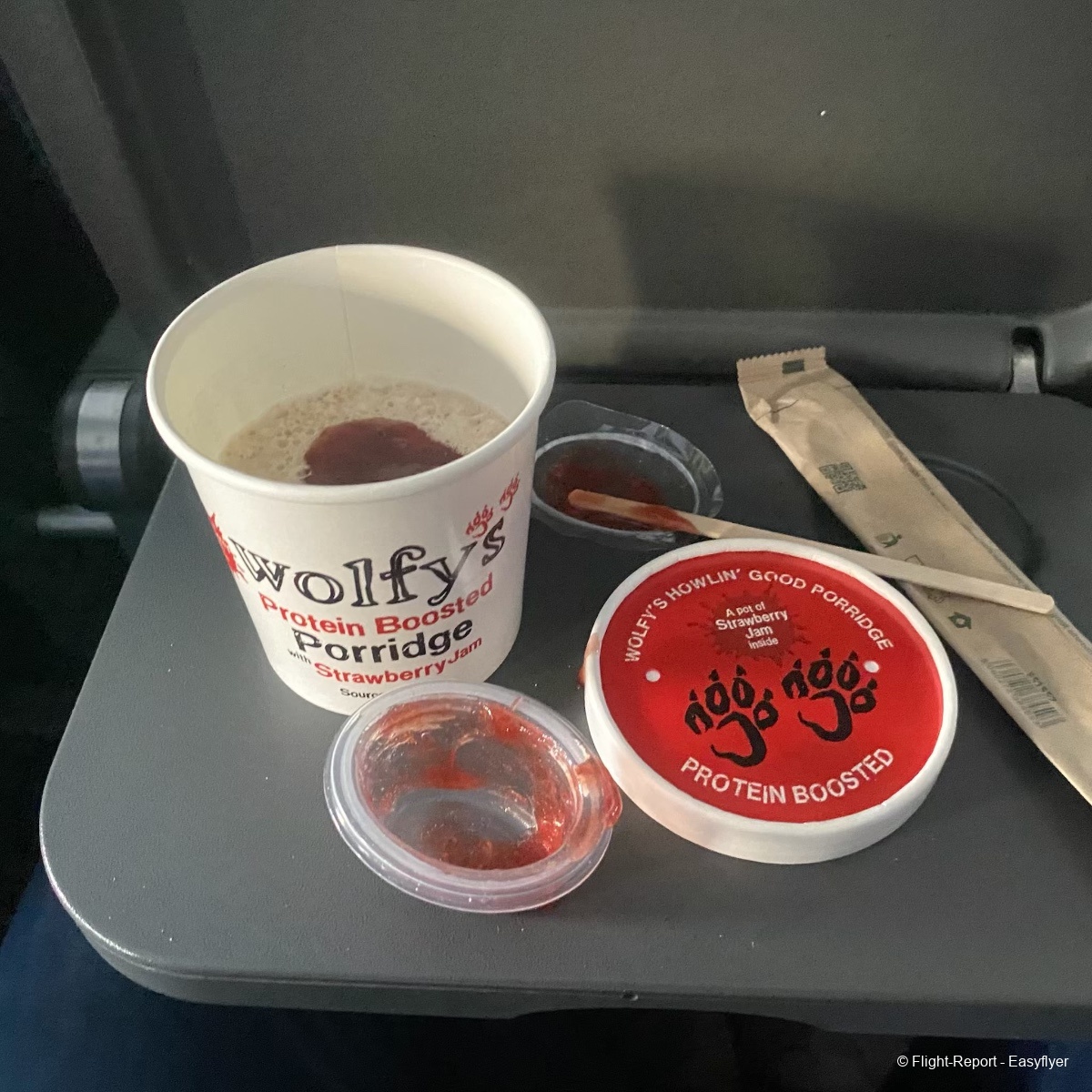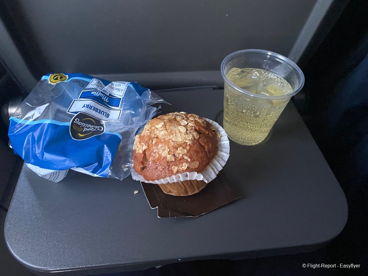Shortly after takeoff, the cabin crew preformed the Buy on Board service. I was keen to try their offering after overhearing a passenger on a previous flight complaining that the food was “completely inedible” . I had a blueberry muffin and an appletiser, my Dad had a porridge and a coffee.