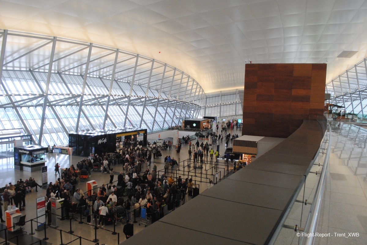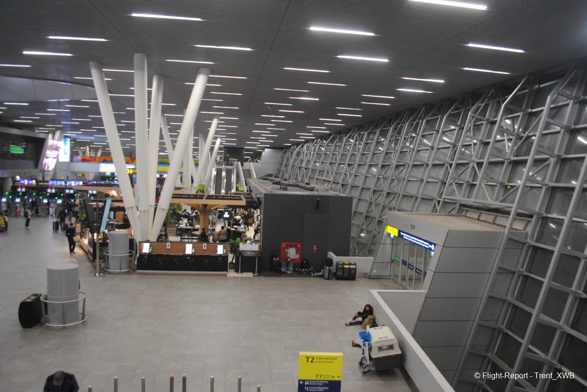 Let's start reviewing T2 from the arrivals zone. My transpacific flight AKL-SCL arrived to T2E pier.