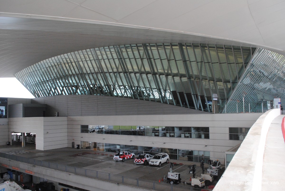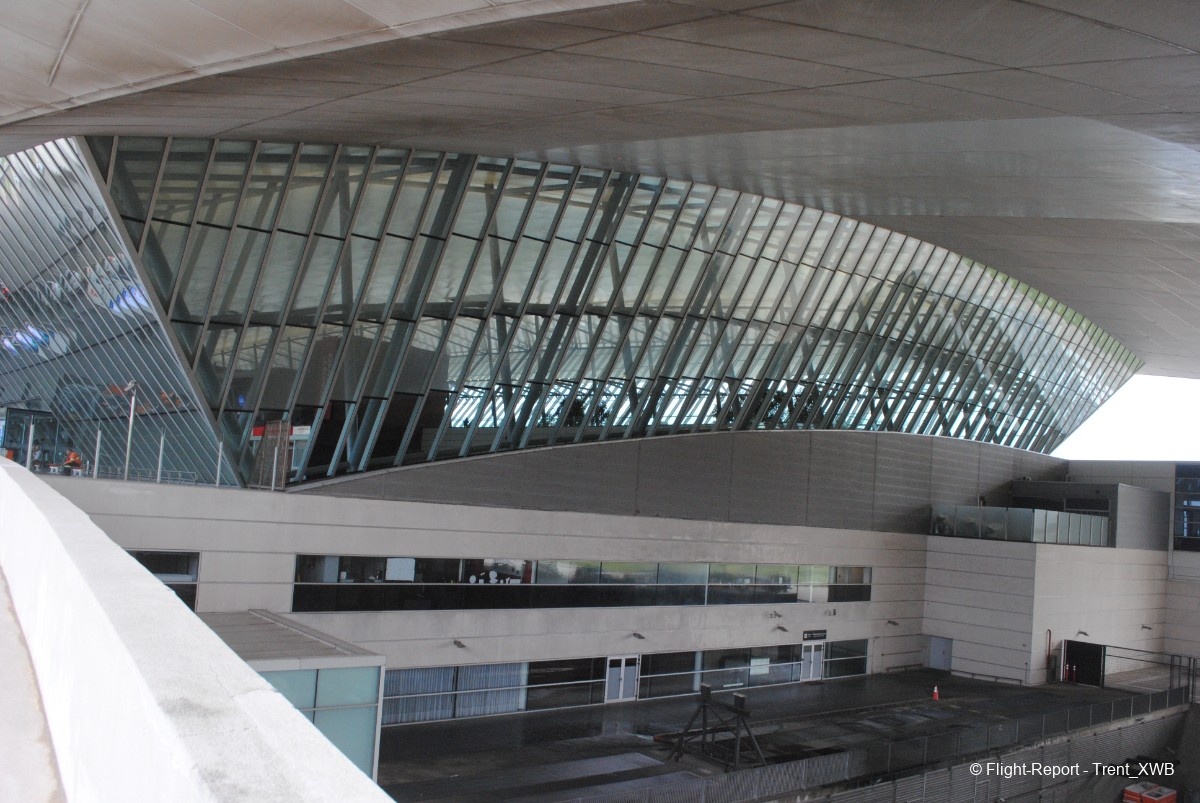 The terrace above the hall has windows facing the apron, though the views are very obstructed by the metallic constructions of the terminal.