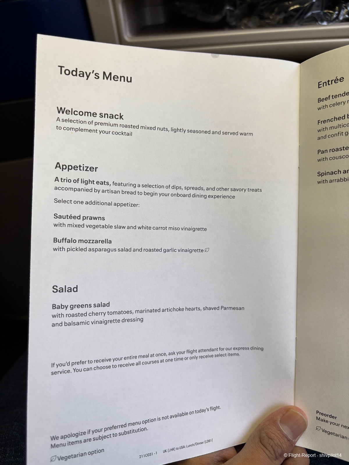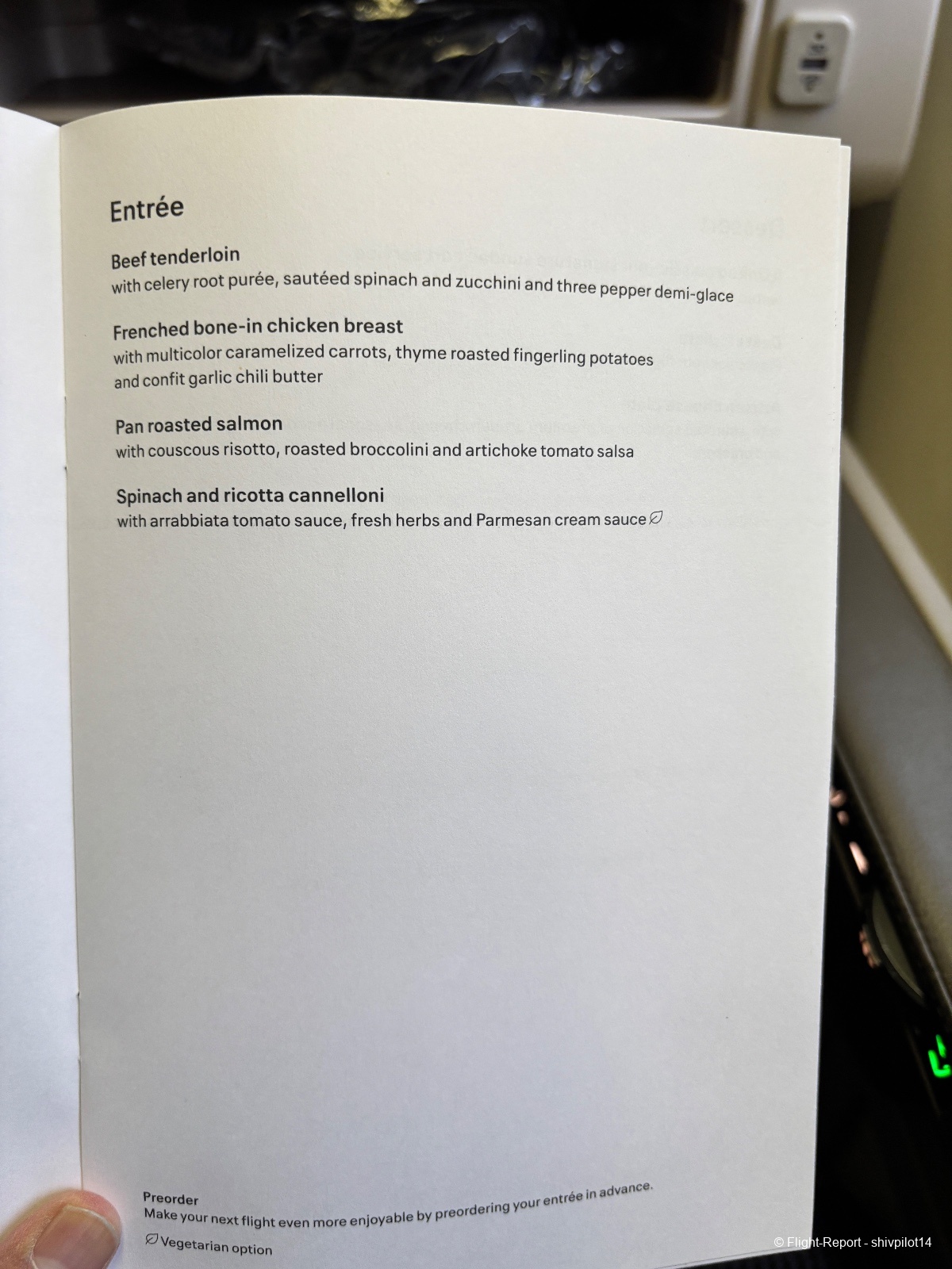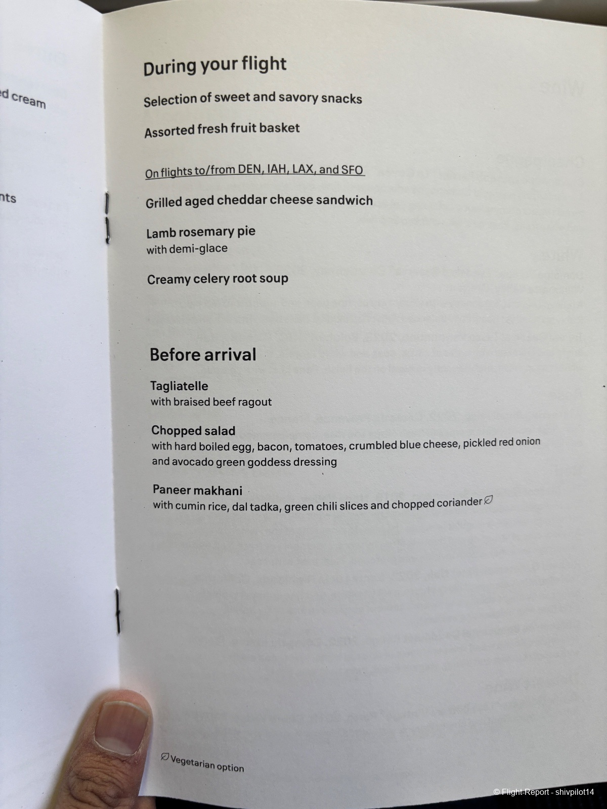 At 11:40, a flight attendant came by to confirm my meal choice. I am attaching photos of the menu, but note that United allows you to preorder your meal beginning 5 days before departure.