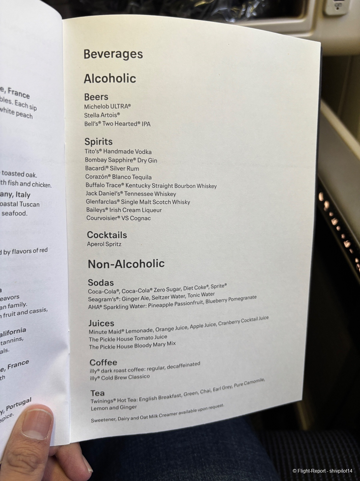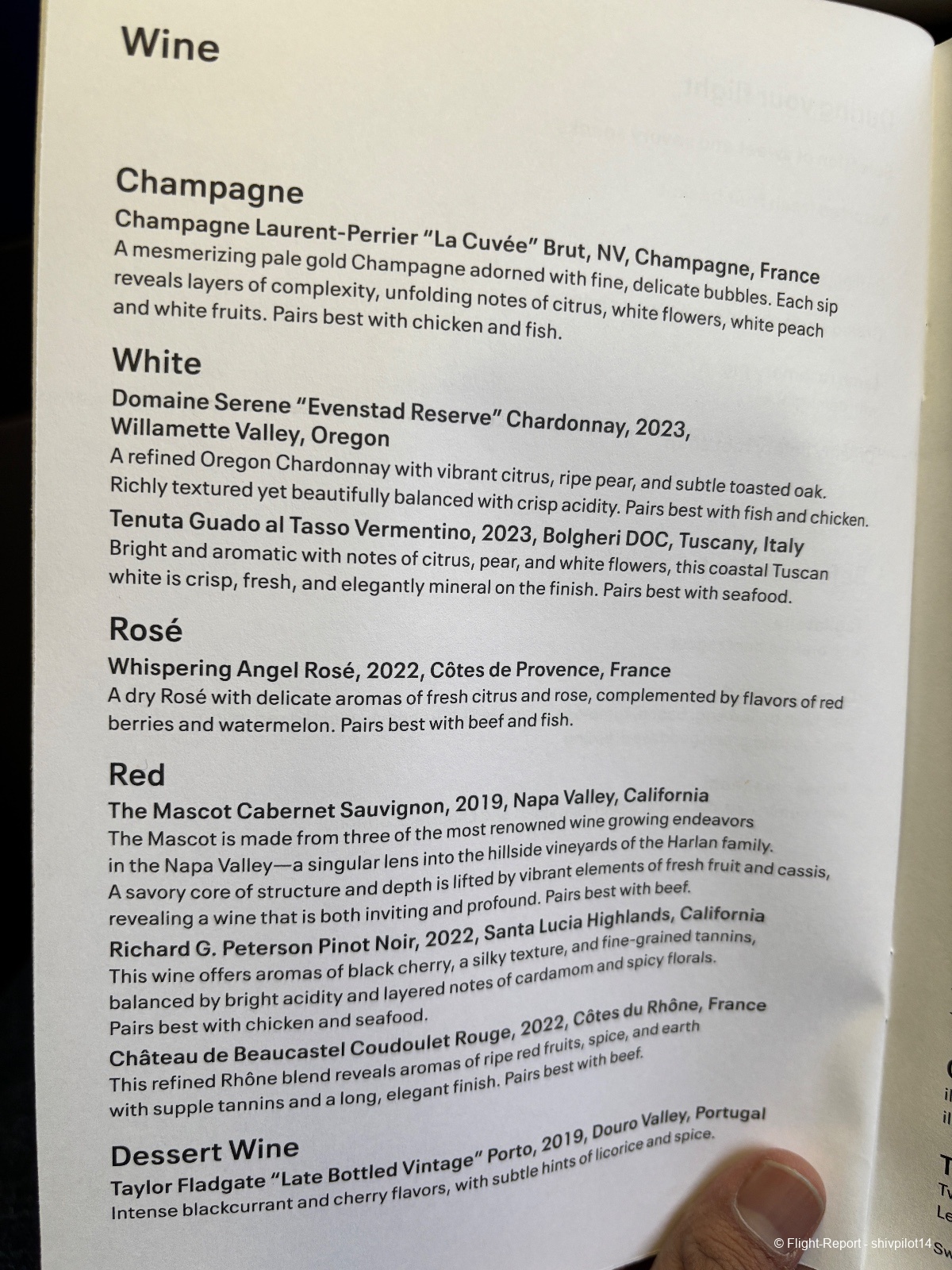 Before anyone else had even boarded, a flight attendant came by to ask if I wanted my jacket hung up or if I wanted my pre-departure beverage of either water or sparkling wine. She took my coat and came back with my water a few moments later.