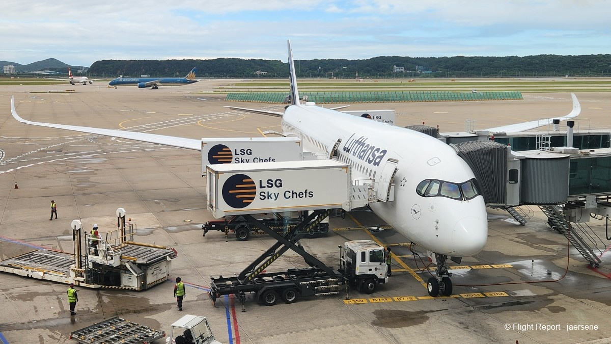 In the Northern Summer season, Lufthansa sends two daily A350s to ICN, from FRA and MUC, respectively. Although they did send the 747 (-400 and the -8) for a few years, that became part of the past with a new FRA A350 hub. One interesting about my flight today is that it's operated by the plane that came from FRA, and not the one from MUC.
