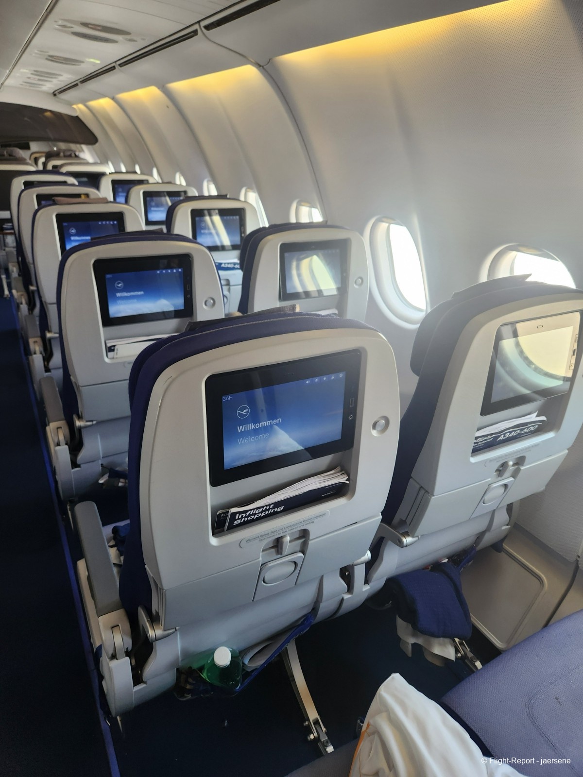 A Lufthansa logo and some ad was shown every time I opened some new program to watch. With something on the screen, I had another 3 hour sleep.