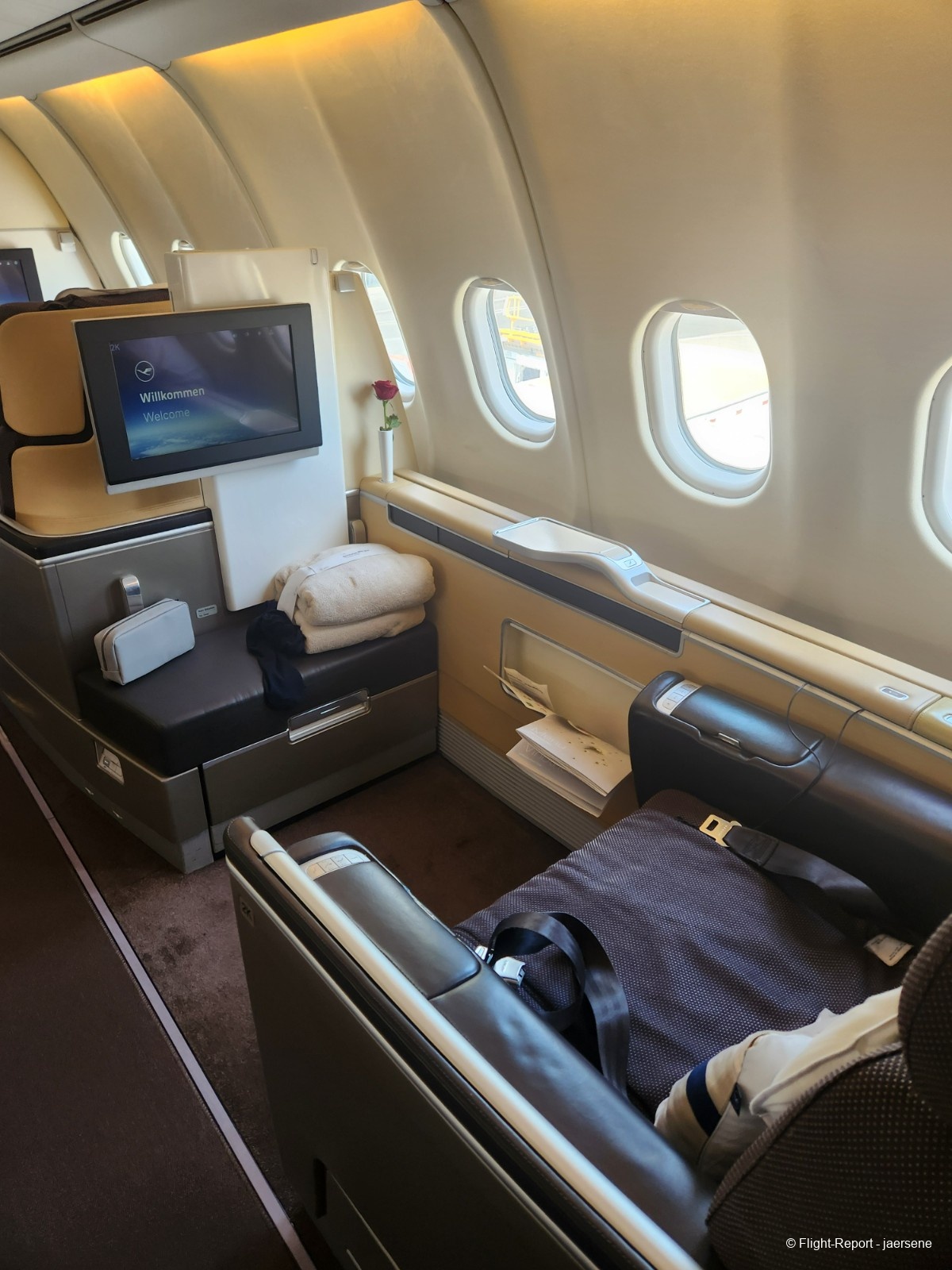 I paid extra to reserve this seat, because I wanted to get a view with the outer engine visible. Had I gotten a seat further up on the fuselage, I probably would've gotten a wing view you'd also get on an A330, which wouldn't have satisfied me. Also, as I was nearly put in a situation where there was no window seat available on my previous long haul flight on LH719, I made sure that wouldn't happen on this flight.