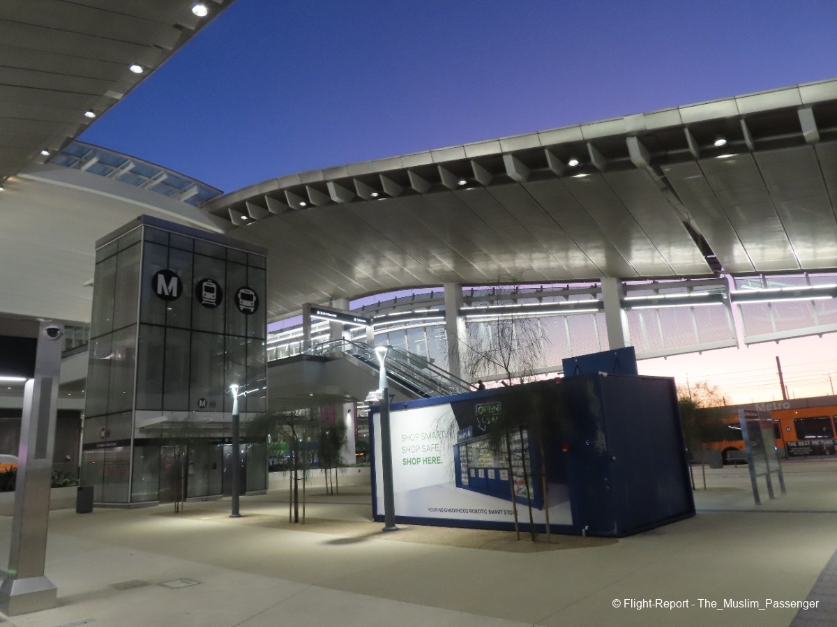 LA Metro did a good job with the transit center, the new station has public bathrooms (before and after the fare gates), plenty of seating areas, live display boards, multiple security staff present, and bits of nature incorporated into the structure. It was a far cry from the dingy looking LAX City Bus Center. See? Public transit in the US isn't all that bad…but still has a long way to go. The APM (Automated People Mover) train that is to connect this facility to the airport terminals is still, not yet, in service. After multiple delays, it is slated to open to the public in June 2026.