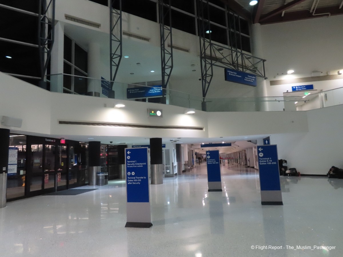 So we had to exit Terminal 2 and walk to terminal 1.