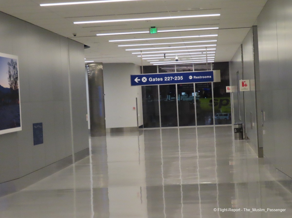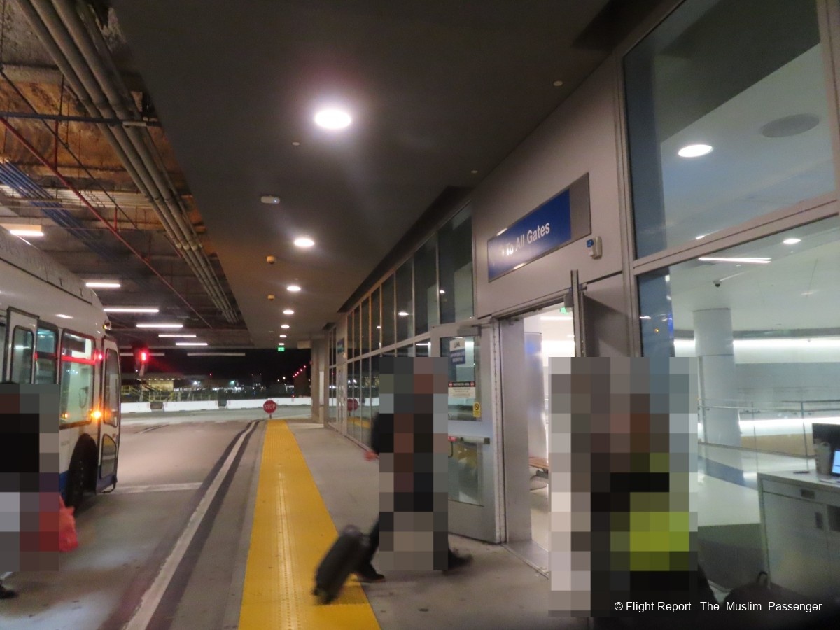 After clearing security, we made our way to the shuttle bus stop. It was clearly marked with signage and staff members asking us, "airline?" before letting us go down the stairs. The shuttle waited for a few minutes as more people got on, once the shuttle behind it pulled up, we finally headed for the Tom Bradley International Terminal - Midfield Concourse aka Terminal B West Gates
