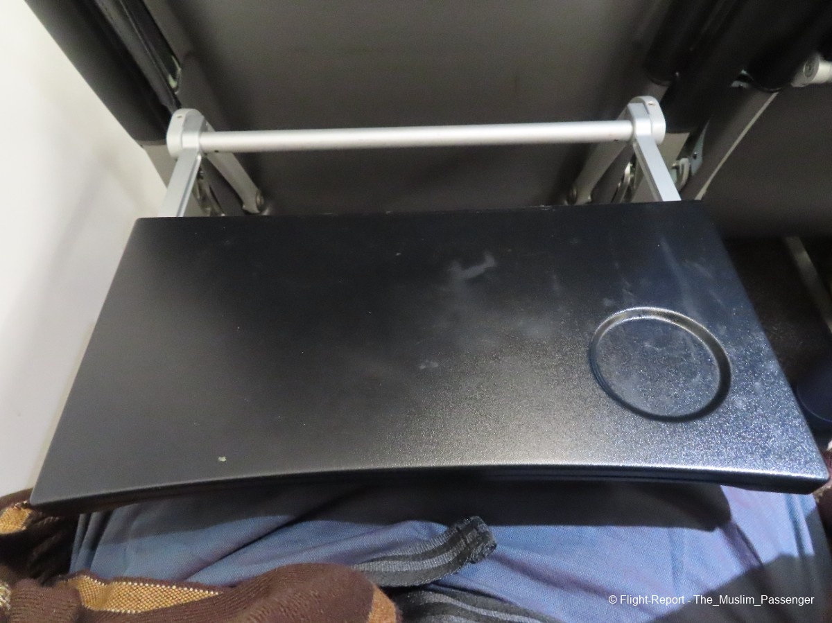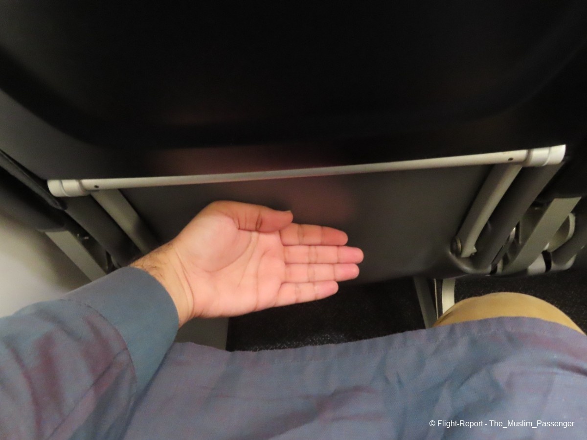 However, the tray table was definitely not cleaned and the seatback shell felt pretty thin, to the extent I could faintly feel the knees of the person behind me at times when they moved around.
