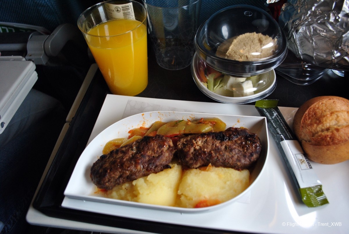 Meanwhile the dinner is served: kofte (minced beef) with mashed potato, sauteed tomato and peppers, hummus, green salad with white cheese, caramelized fig chocolate mousse, bun, crackers, butter, jam and salad dressing. Very tasty and filling!