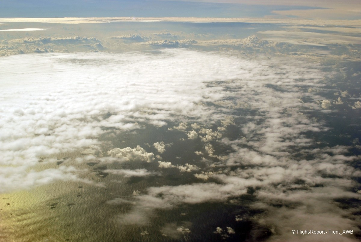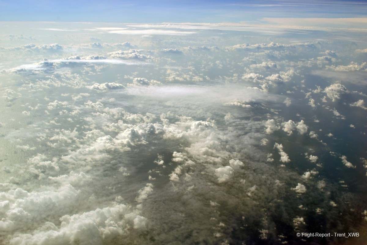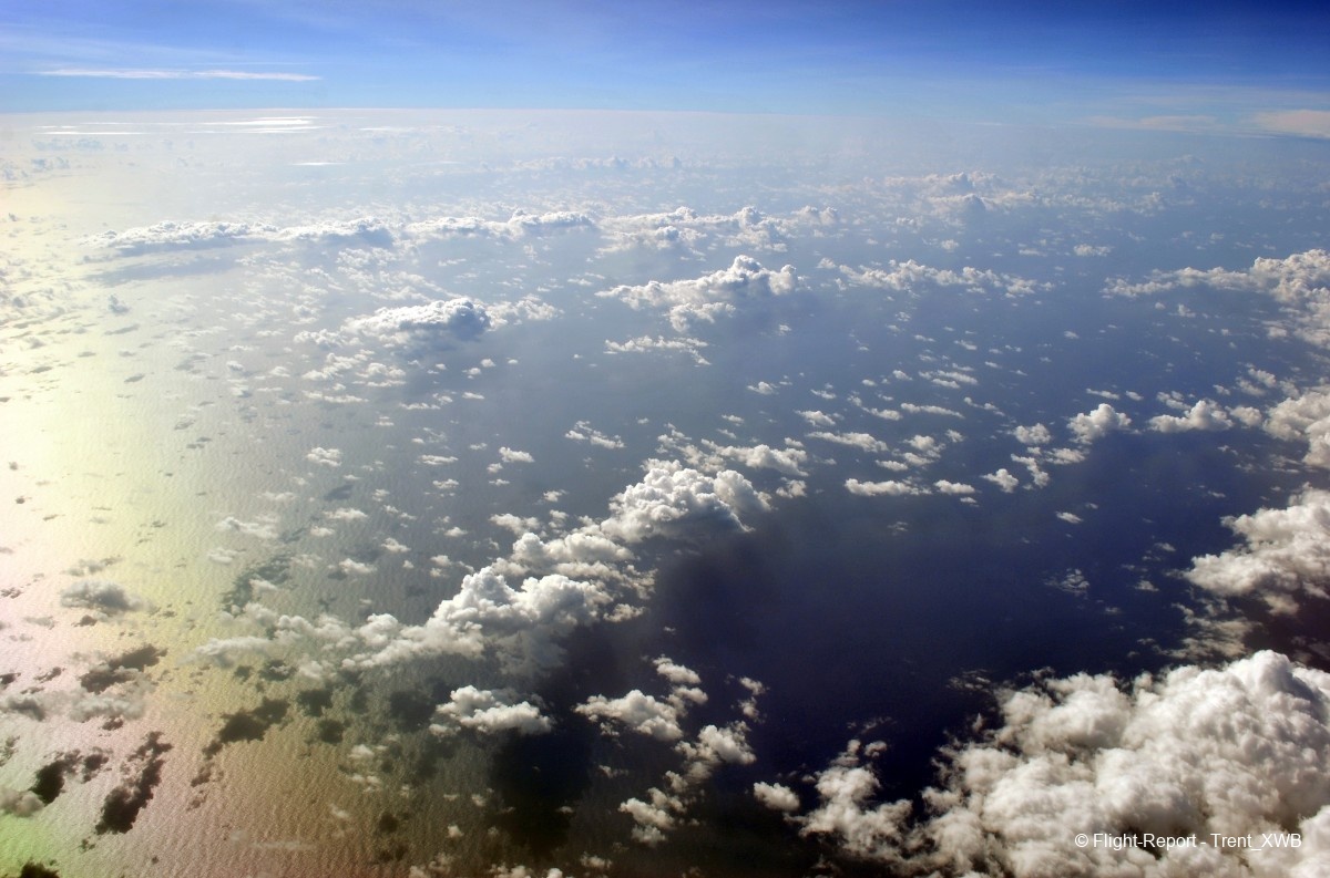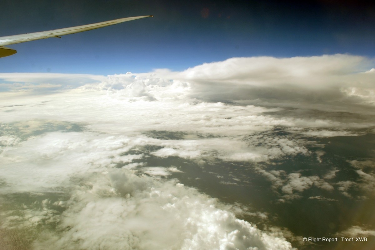 Passing the intertropical convergence zone with its huge clouds and some turbulence.