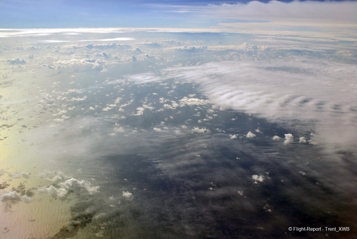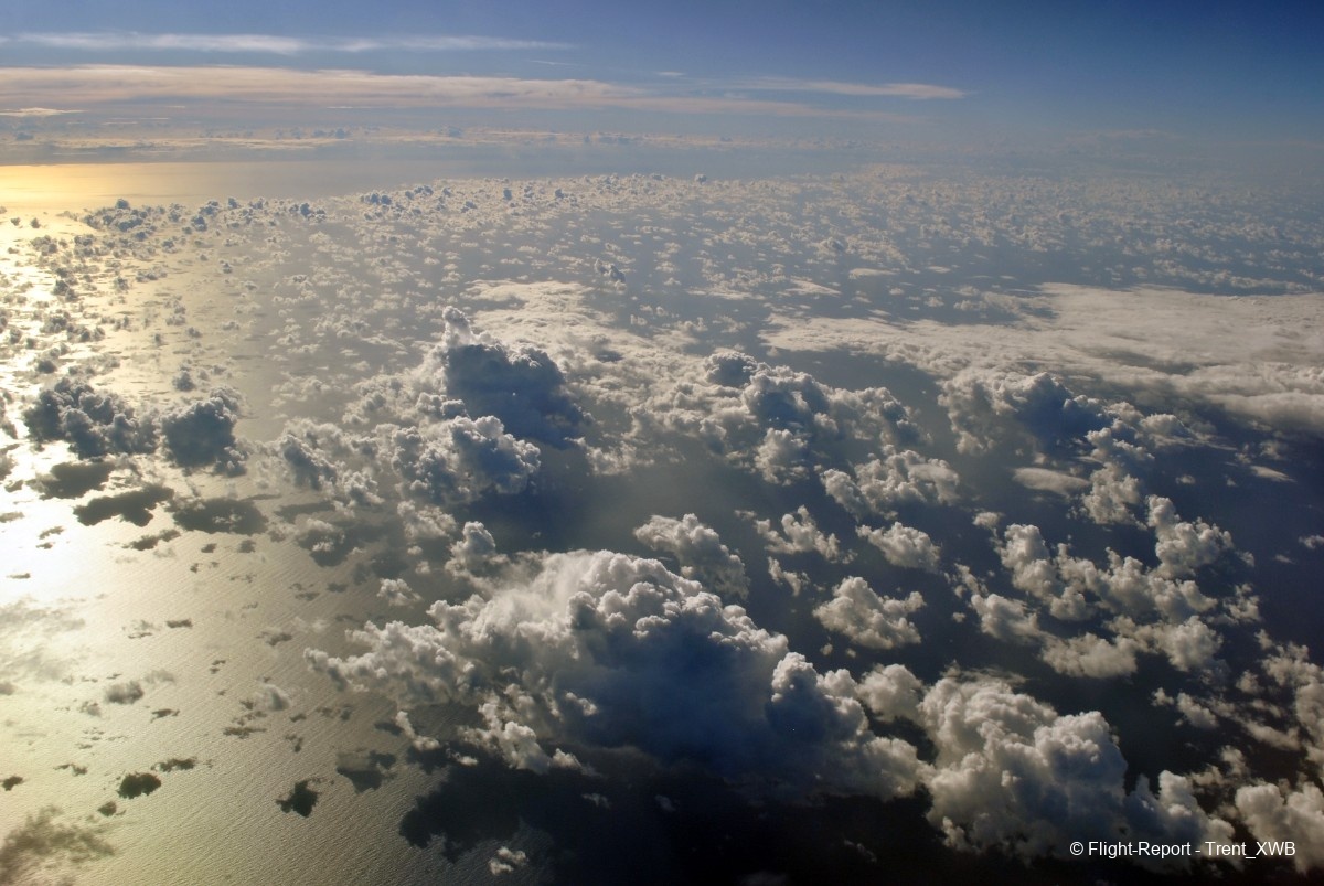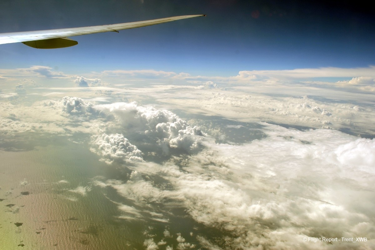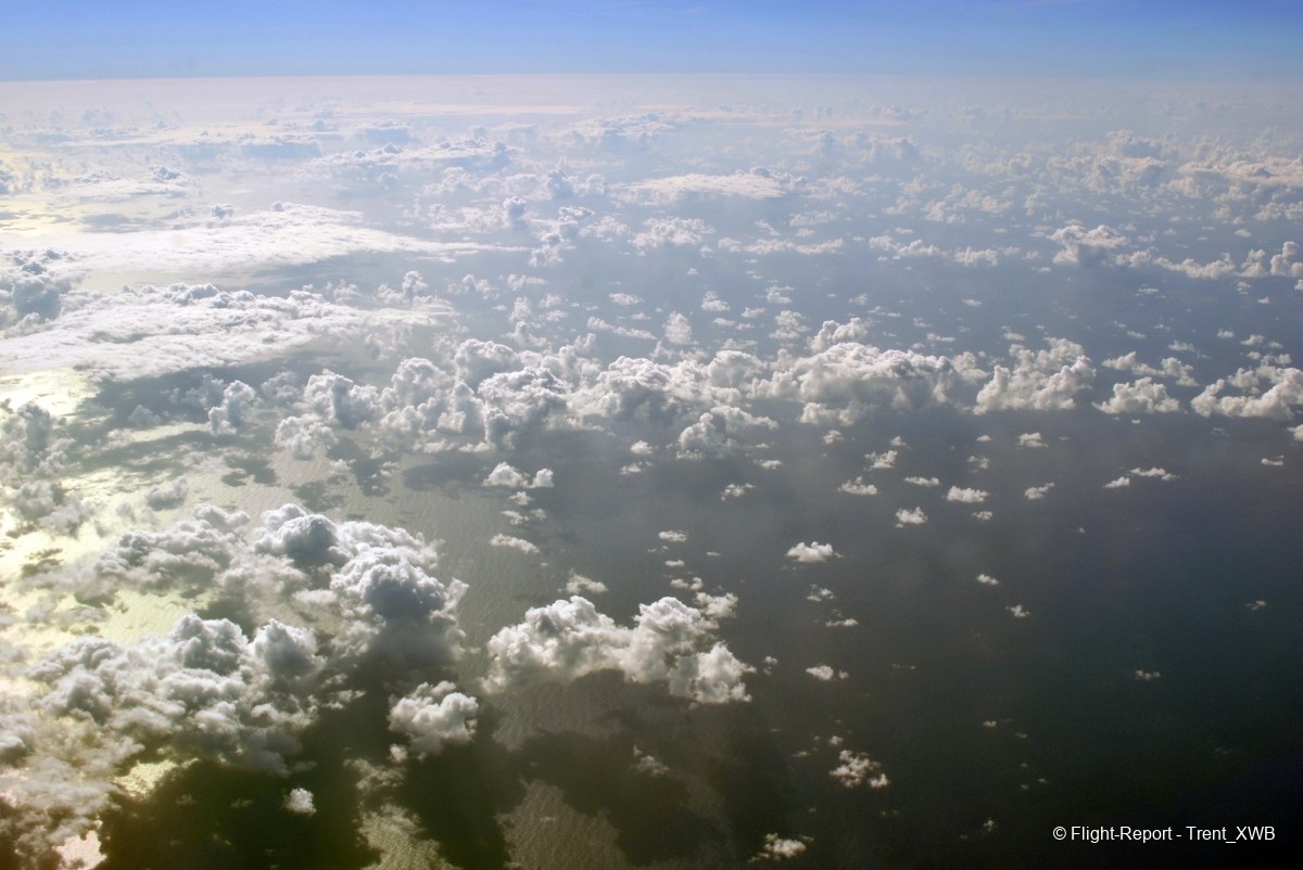 Passing the intertropical convergence zone with its huge clouds and some turbulence.