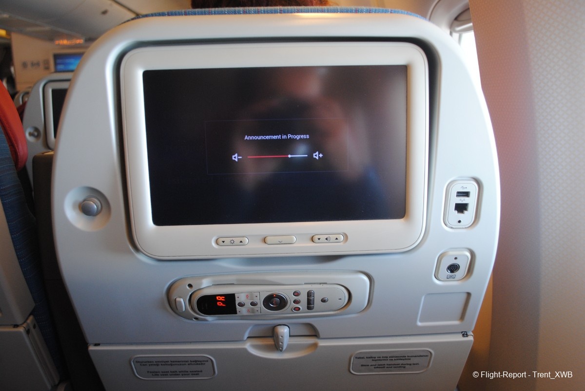 The first 12 TK's own B77Ws (TC-JJE to -JJP), delivered in 2010-2011, had 3-class layout C28_W63_Y246. I'm glade I made this screenshot at the gate, because it demonstrates how that layout looked like. The business class cabin consists of 4 rows of 2-3-2 lie-flat seats (Zodiac Aura Lite) between 1L/R and 2L/R doors, the premium economy cabin - extremely atypical for today's standards! - consists of 9 rows of 2-3-2 recliners between 2L/R and 3L/R doors, and the economy class in 3-3-3 layout (Weber 5751 seats) consists of 2 large cabins - between 3L/R and 4L/R doors and between 4L/R and 5L/R doors. After 5 years of flying B77Ws with this layout TK realized that it was losing money on the premium economy and from late 2015 to mid-2016 eliminated this class completely. Instead, TK put 3 more rows of 2-3-2 business class after 2L/R doors and a small economy cabin between this 2nd business cabin and 3L/R doors, thus making the layout similar to C49_Y300 layout of its 2014-2017-built B77Ws. TC-JJK was reconfigured in May 2016, just 3 months after my flights (in the bonus section below I'll show, how the cabins of TK's first 12 B77Ws look after the reconfiguration and refurbishment). Now we know that premium economy in B777s is sustainable only as a small cabin with 2-4-2 layout. Currently only 4 TK's "Turkoflot" A359s (TC-LGI/J/K/L) with SU-ordered cabins feature true premium economy cabin (I flew "Turkoflot" TC-LGL from IST to TLV in June 2023, and it was a very memorable flight!), but it is marketed as "economy plus" for the holders of higher tiers of "Miles and Smiles" loyalty program.
