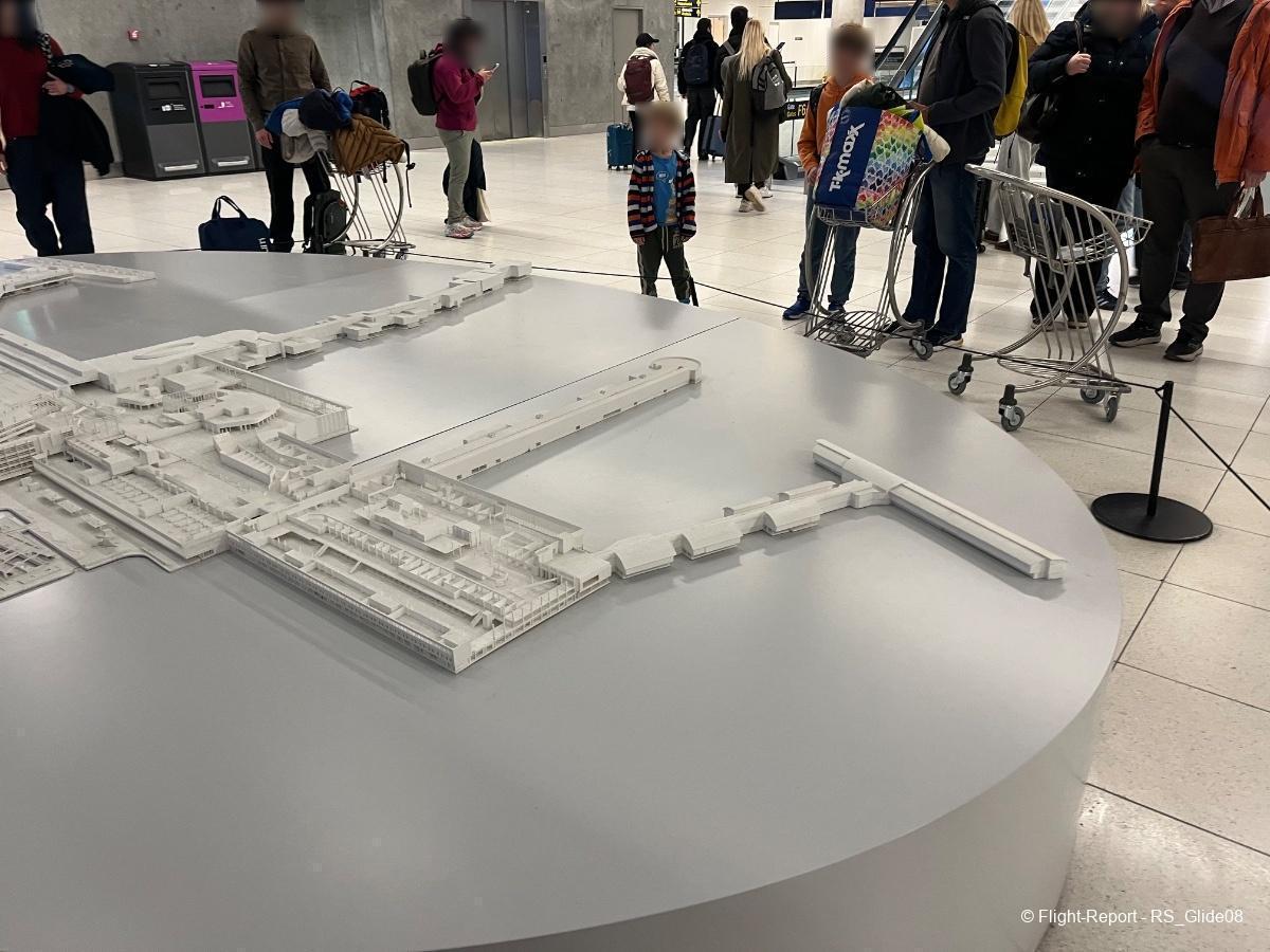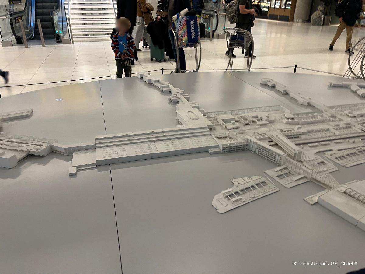 At around 7:15, I left the lounge and walked to gate E20. This direction led me to the outskirts of the airport, away from where most of the amenities were, and the walk did not have much in the way of interesting things apart from a scale model of the Airport.