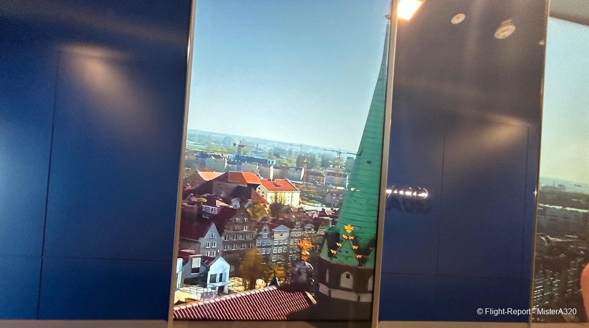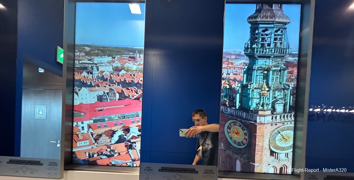 Then, I made a stop to the restrooms which were very clean. I noticed some screens between each mirror streamed some views of Gdansk region, which is such an original touch.