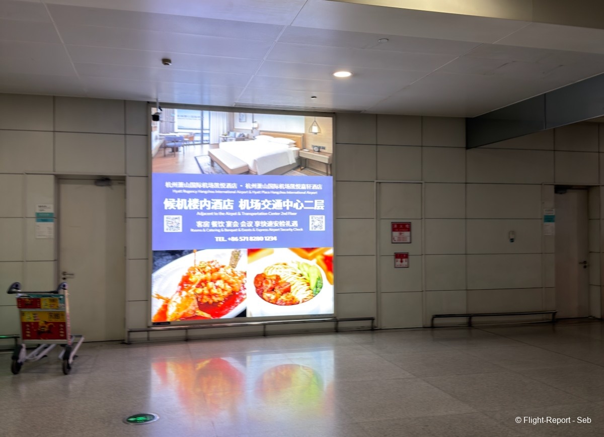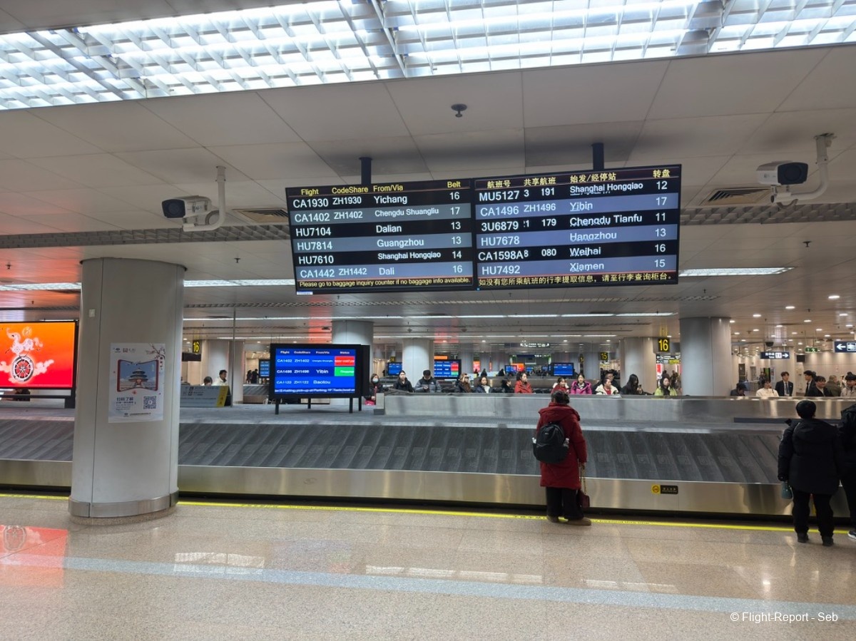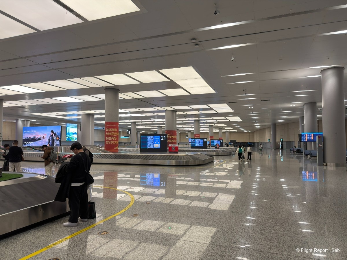 I hopped out of the COMAC C919 from my previous flight and headed straight to Arrivals so I could walk to terminal 3. HGH's terminal 4 is modern, spacious, clean, and had many shops and restaurants. It's one of my favorite airport terminals I have ever been to. Since I've already talked about the departure area (after security) of the terminal in my first flight report, I'll start from arrivals this time. At first, I went though a hallway that had a really tall ceiling. Right before the baggage claim area, there were beautiful Chinese-style umbrellas hanging from the ceiling as decoration, plus a huge screen showing all the airport’s destinations. I also noticed some displays about the 2026 Milan Winter Olympics beside the "Welcome to Hangzhou" sign. The baggage claim section of HGH's terminal 4 was big, modern, and was really bright compared to the baggage claim in PEK's terminal 3.