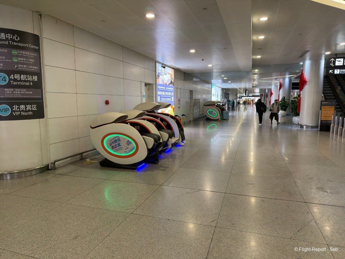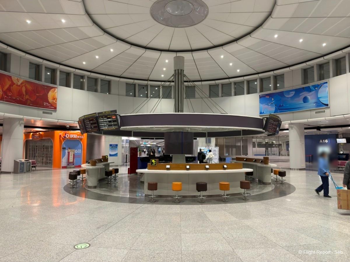 After passing by the overnight resting area, I walked past terminal 4's arrival section again and went up the escalators at the big atrium all the way to the departures floor. The check-in area was large, modern, clean, and had less people than in terminal 3, making the whole terminal quieter. There's also a small exhibition of traditional Chinese items. I didn't go in the small exhibition because I have no interest in these stuff, but I have to say that it's a nice touch to add a small exhibition in the check-in area.