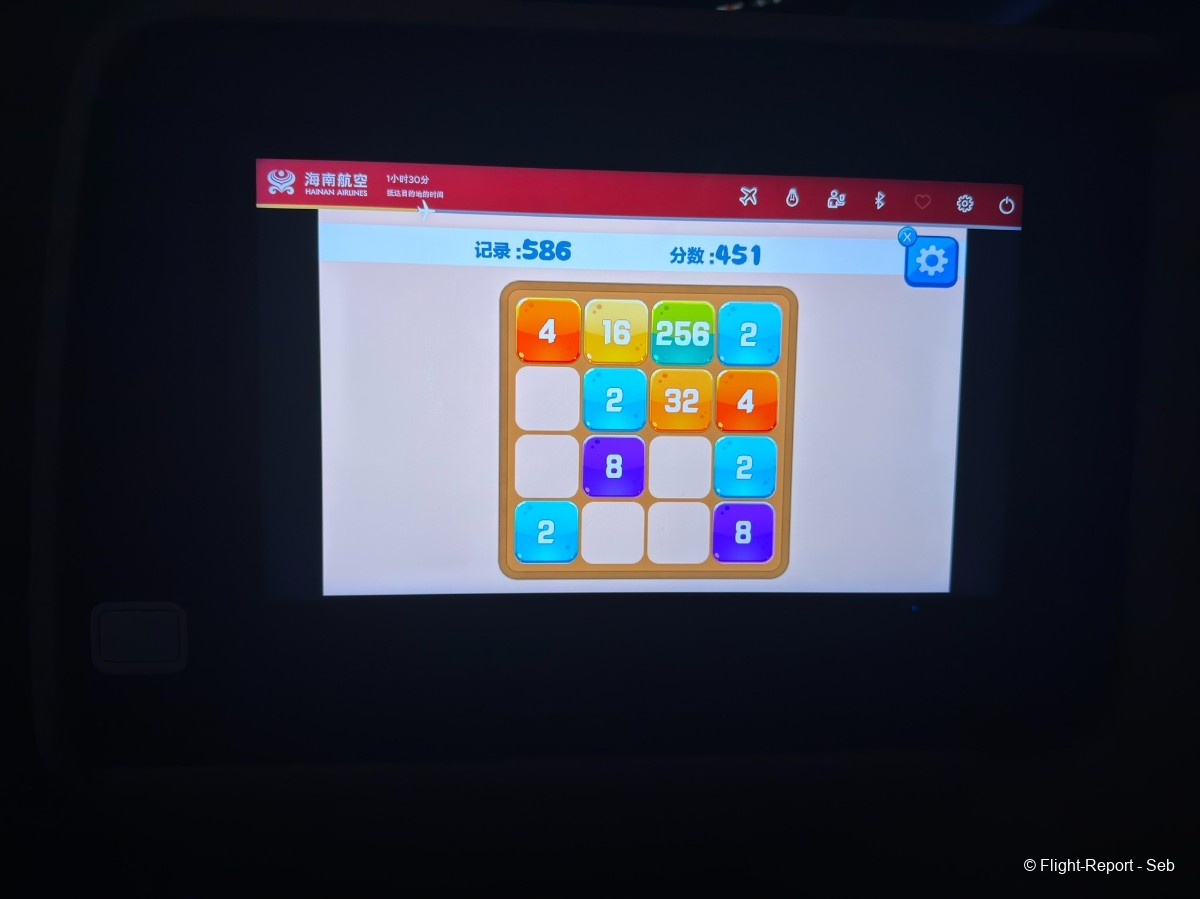 Once the aircraft reached cruising altitude, I was hoping to use Wi‑Fi. But surprisingly, this brand new A330neo didn’t have Wi‑Fi. I thought it would have onboard Wi‑Fi like the A330-300 and the 787s. I looked through the games on the IFE and saw they had a knockoff version of Uno. I decided to play 2048 instead, but I’m really bad at it and I couldn’t get a high score no matter how hard I tried.