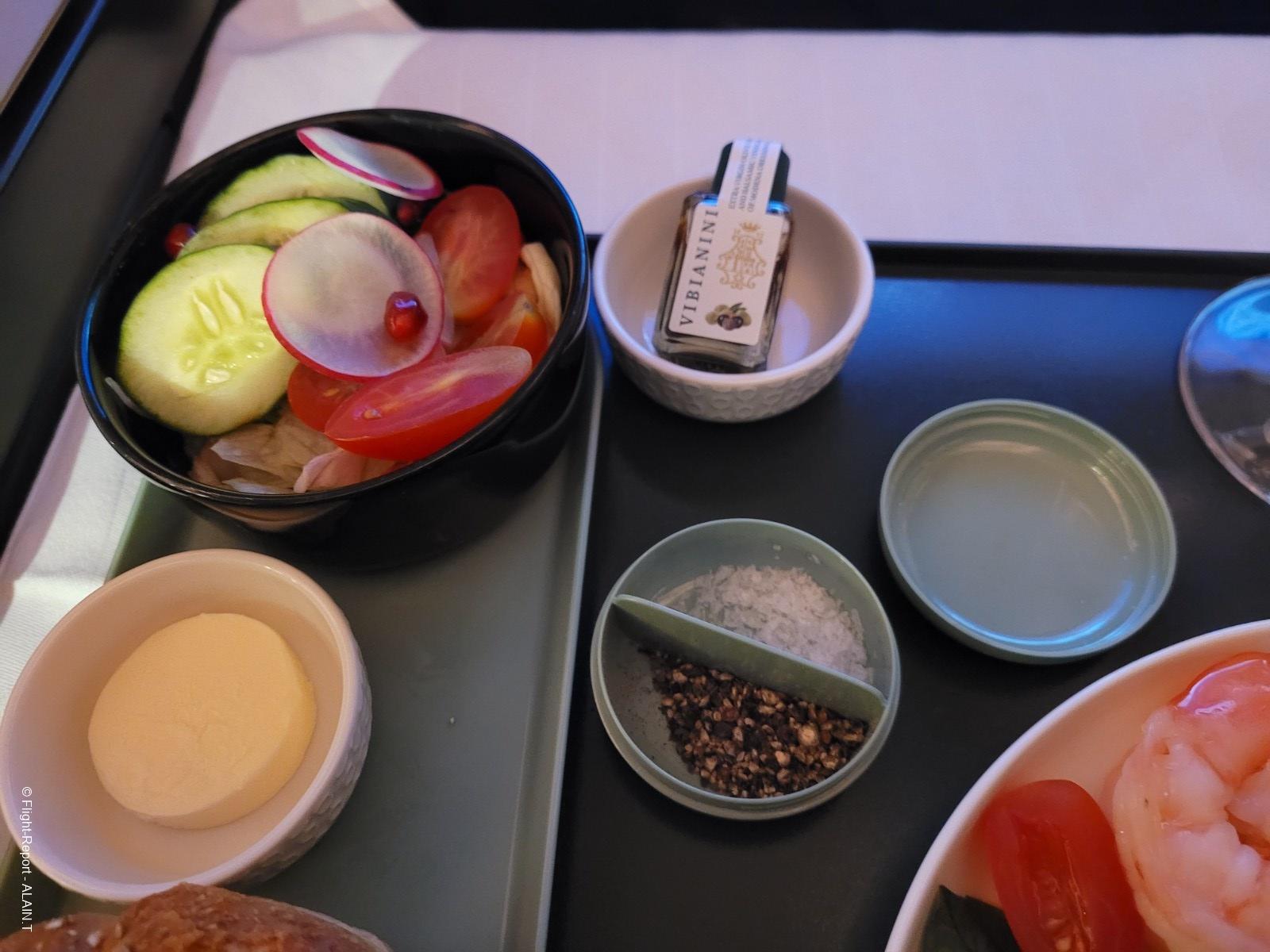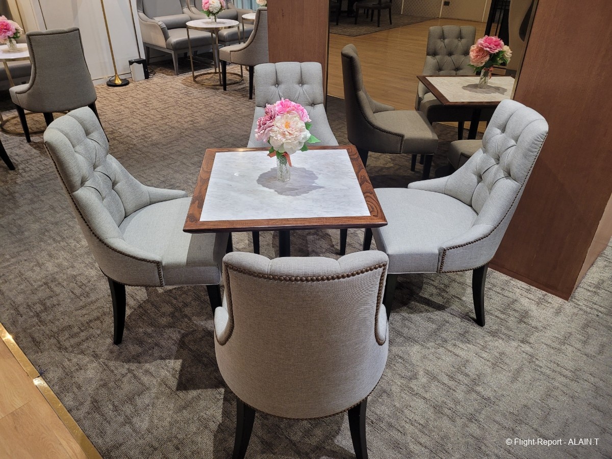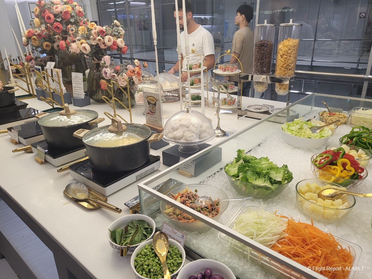 Nous n'avions pas l'information en entrant au salon par le côté Business que nous avion accès au salon First. Pas grave dans la mesure où les buffets sont bien plus importants côté Business. Nous prendrons donc un repas léger dans cette partie du salon puis nous irons au calme côté First.