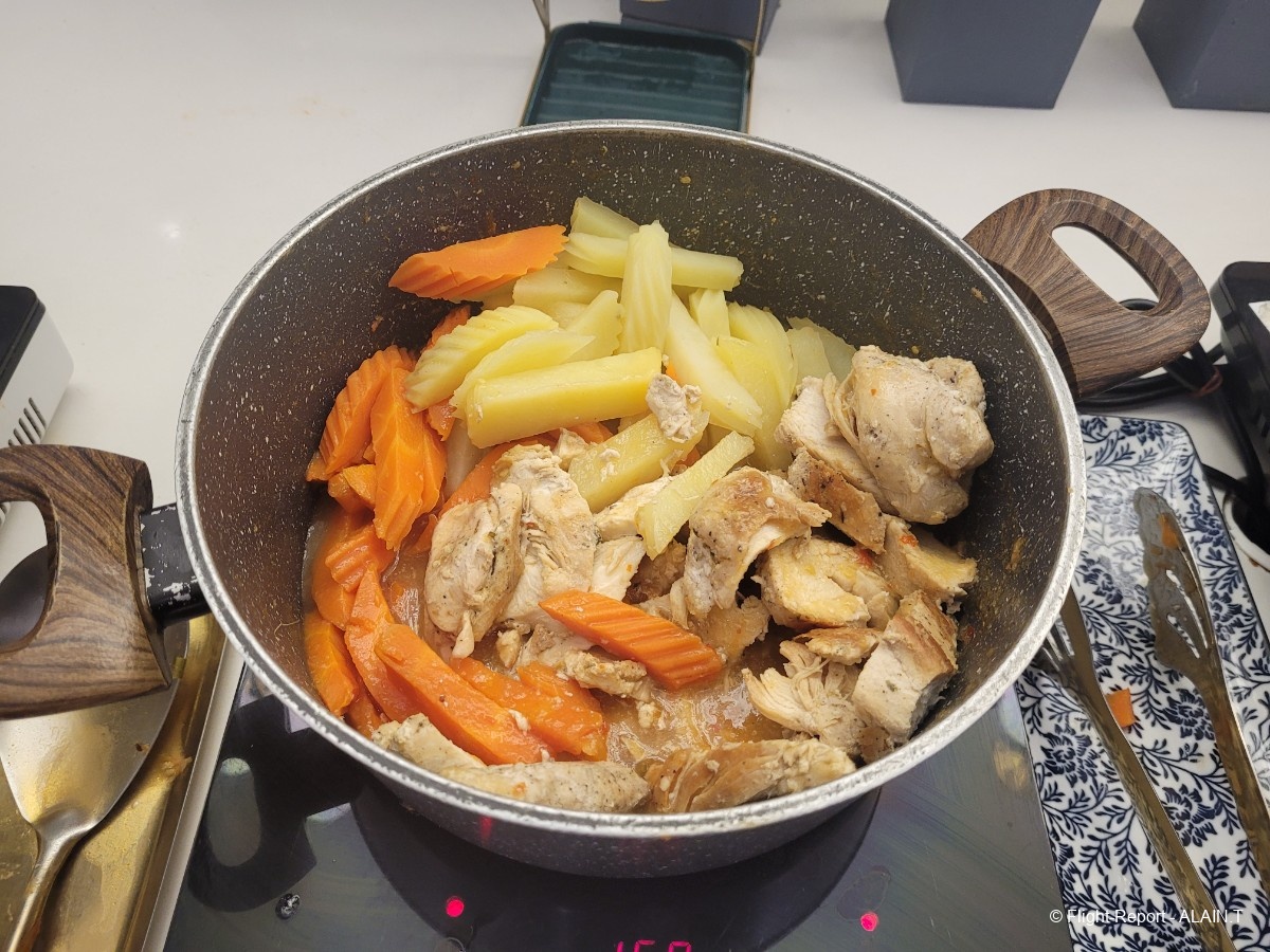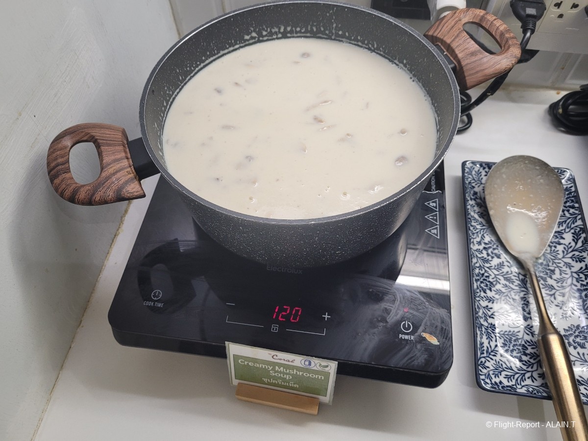 Nos sélections, excellente soupe aux champignons et non moins excellent curry de poulet accompagnés d'un cocktail.