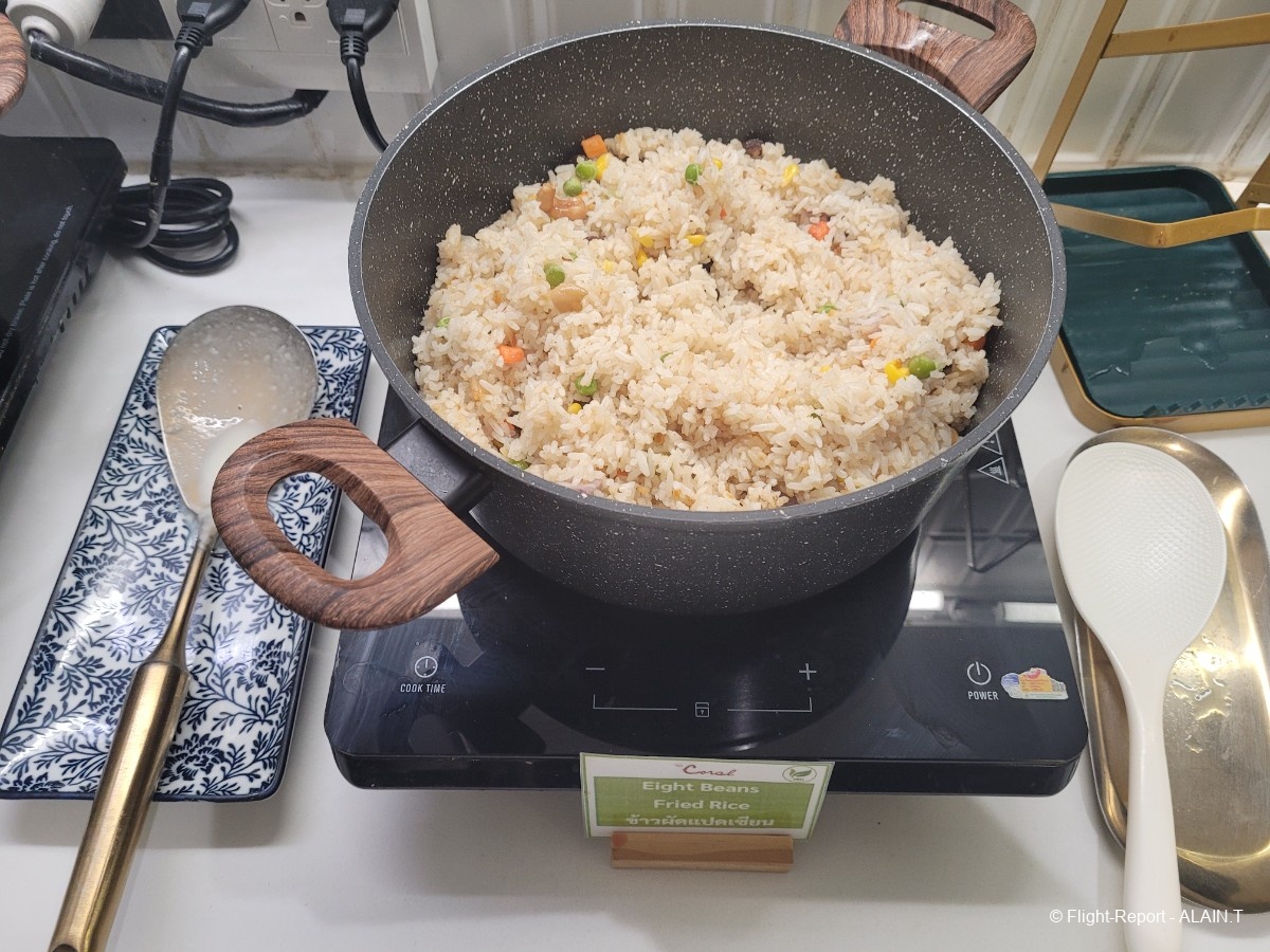 A plus de 100 kms de Bangkok, le service d'apéritif débute par un Cirpiano Bellini (Proseco et purée de pêche blanche). Découvert sur le vol aller d'Etihad, c'est frais et agréable.