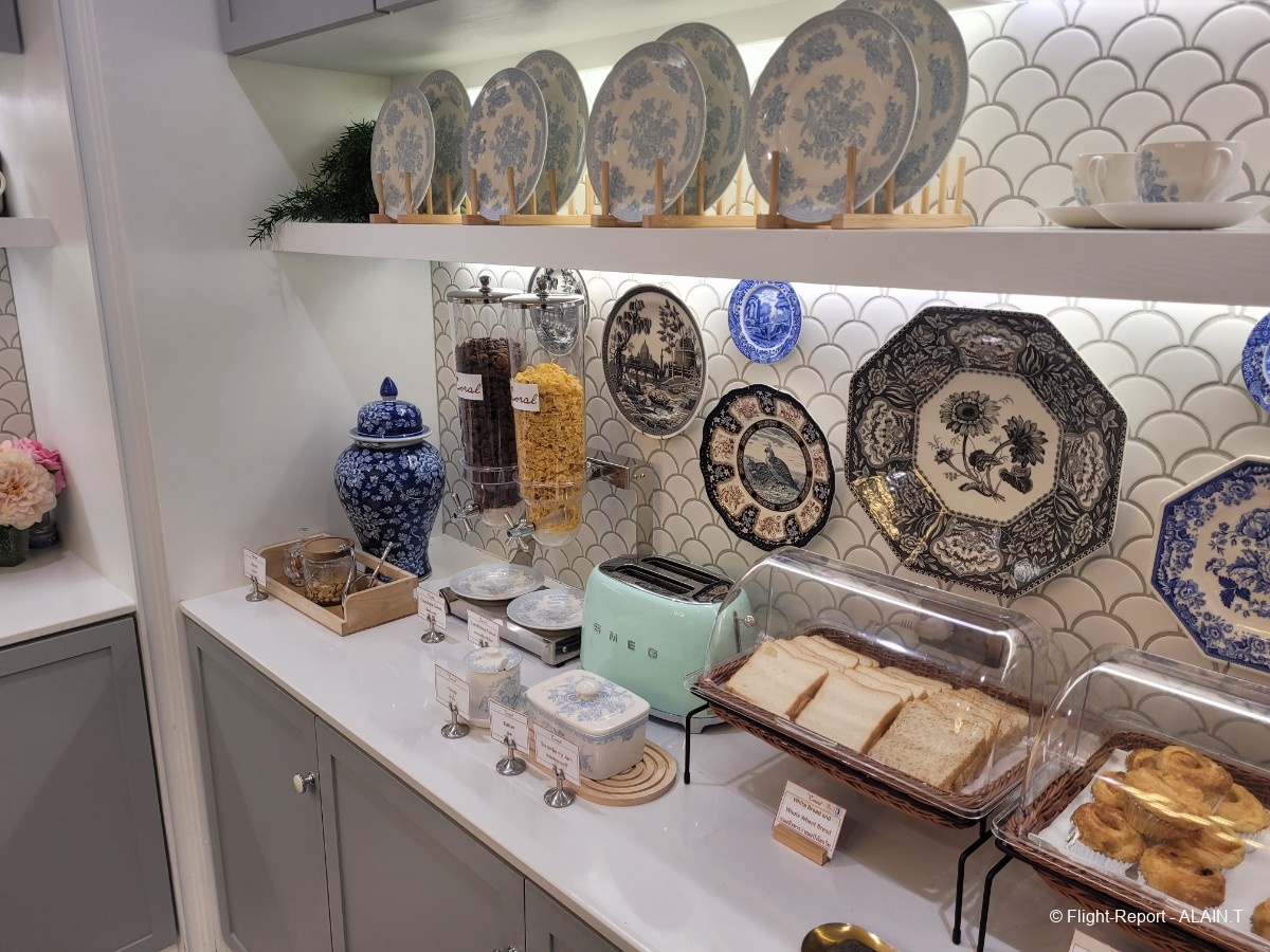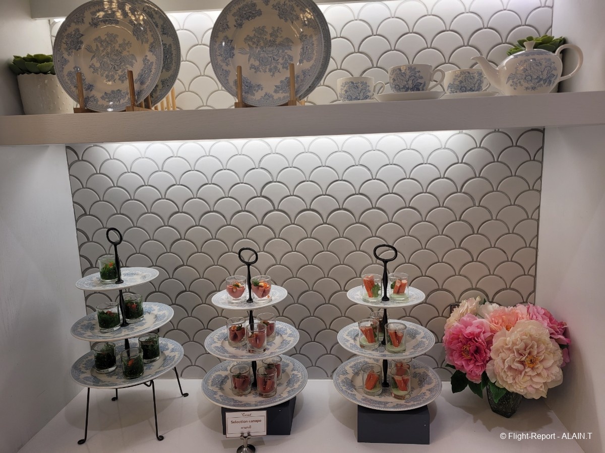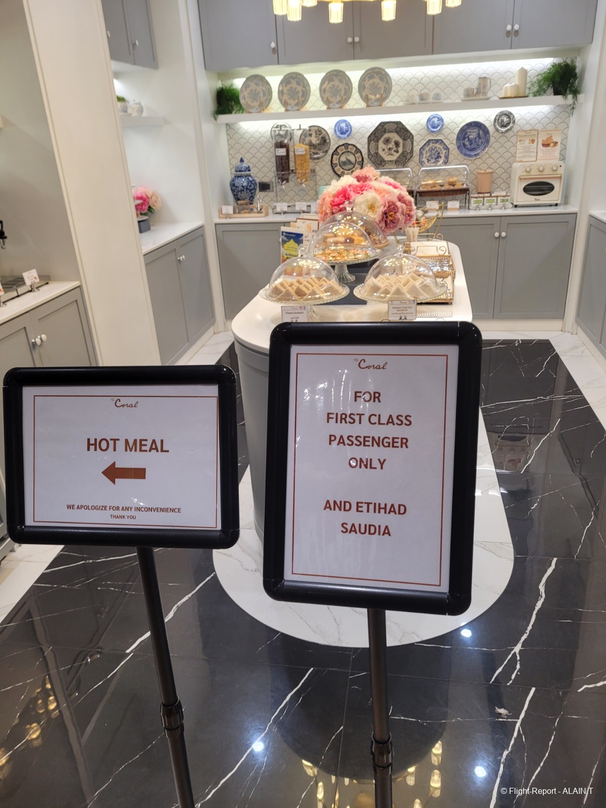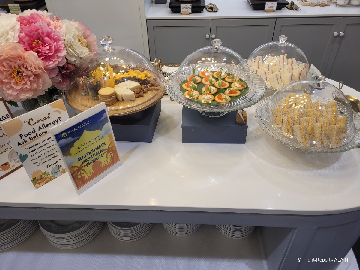 Un buffet est à disposition côté First ainsi qu'un bar.