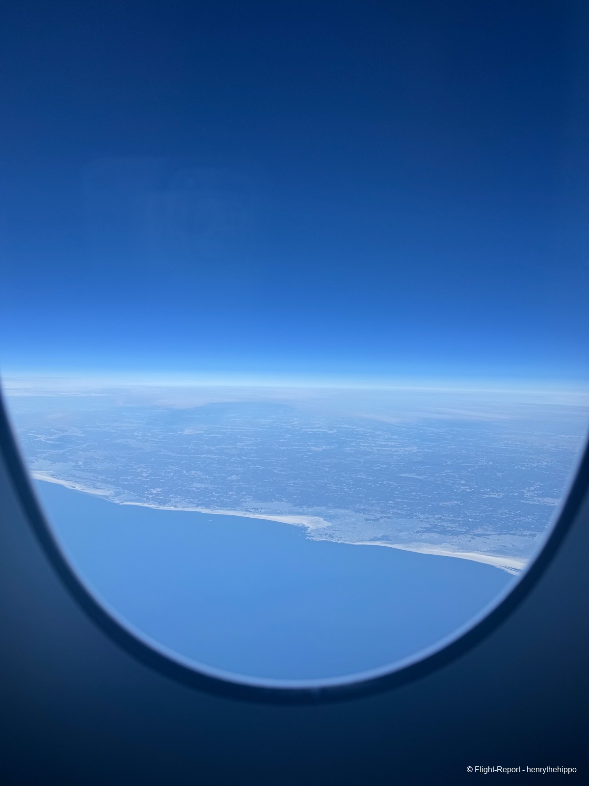 Quick stop to check out the restroom before departure with another nice surprise. The window in the bathroom is such a cool feature that makes you seem more "in the clouds" throughout the flight