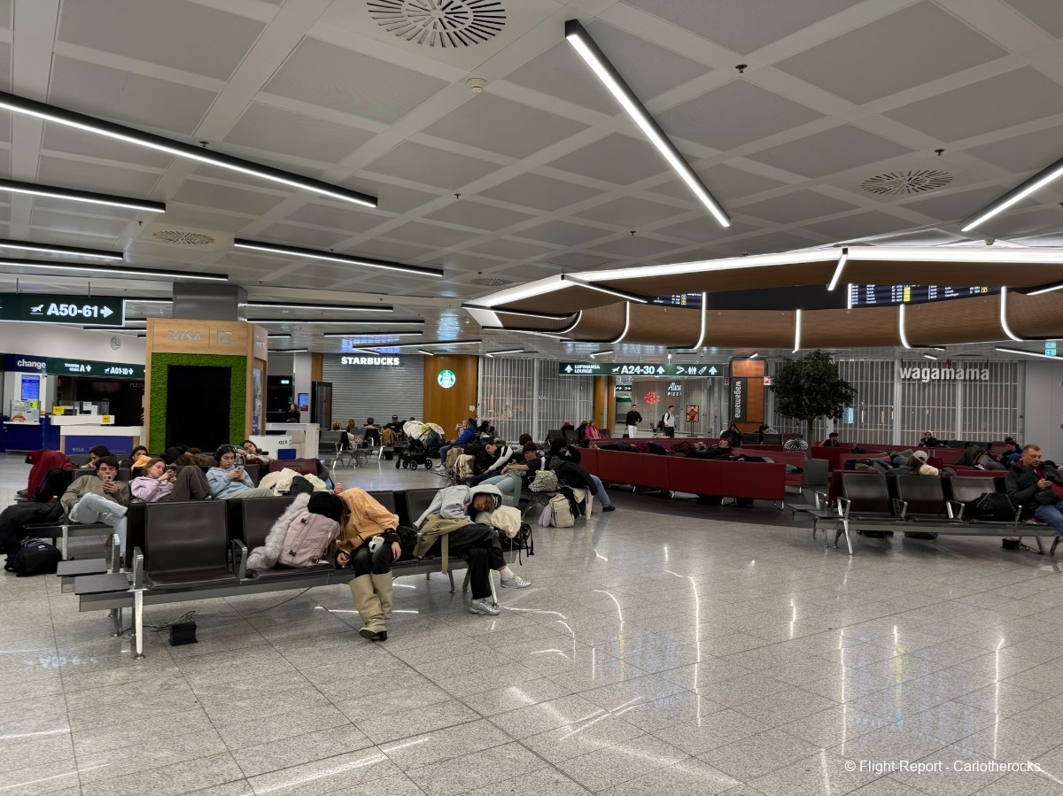 The check-in hall was busier than expected, but still feeling "sleepy"