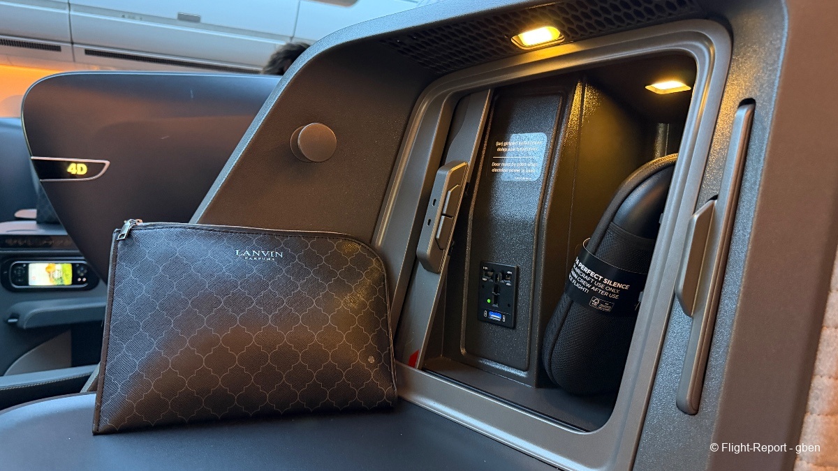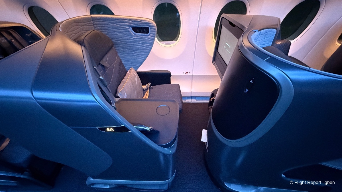 Le siège est confortable pour dormir, siège totalement plat et l'accoudoir près du hublot s'abaissant, on profite de l'espace jusqu'au fuselage.