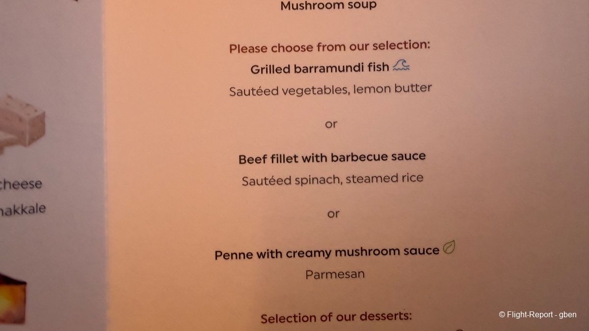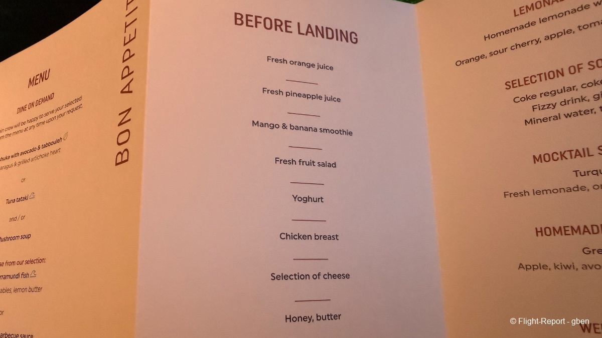 Je n'avais pas connaissance du menu sur ce vol, mais j'avais celui du vol suivant donc j'ai ajusté mon choix pour ne pas être redondant.