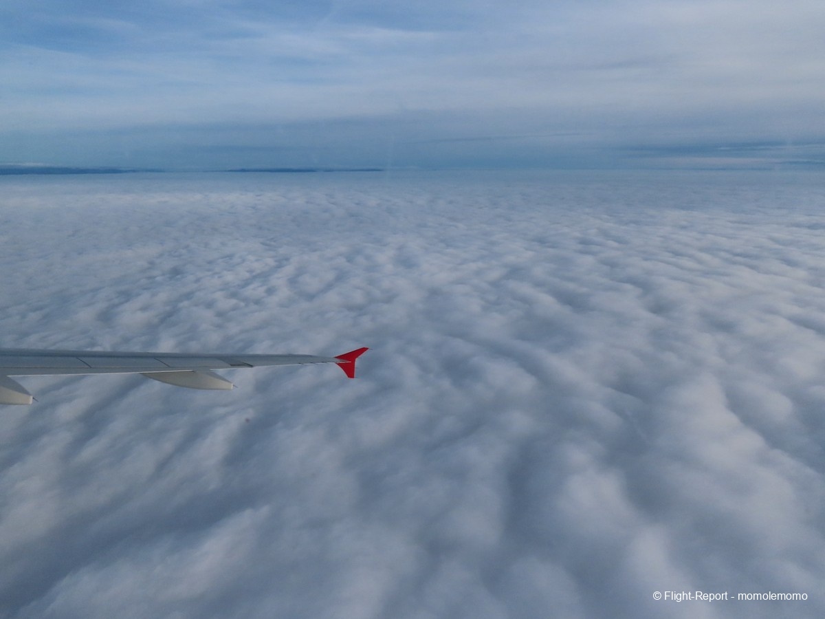 Elle se dissipe enfin à la frontière avec l'Italie. La vue des Alpes est magnifique! Les lumières de la cabine sont rallumées mais pas au maximum comme sur Ryanair. C'est tellement plus agréable et ça permet à ceux qui dorment de continuer à dormir et ceux qui sont éveillés de bien profiter de cette vue sans reflets.