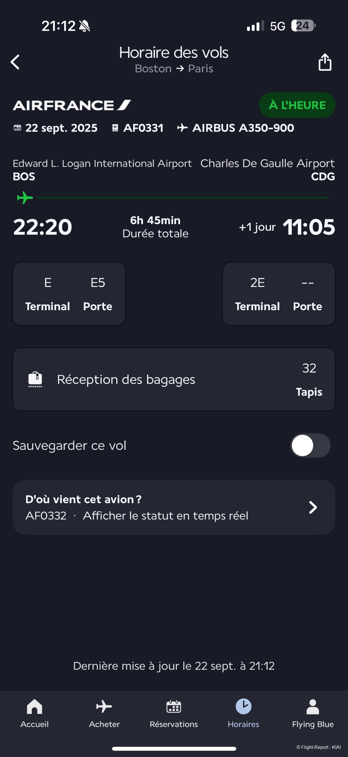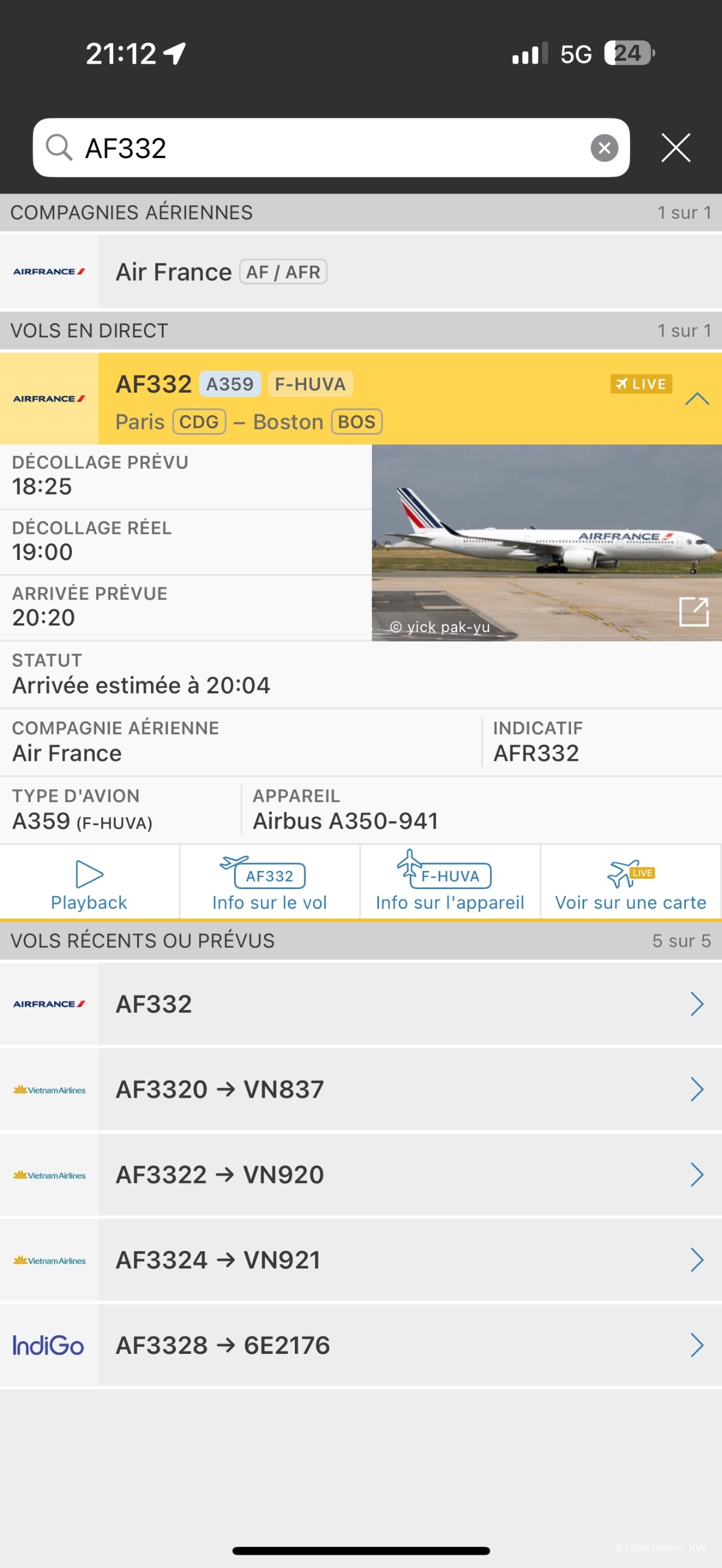 J’ai ainsi pu remonter aux vols AF291, AF292, AF331, puis enfin AF332, où l’appareil immatriculé F-HUVA effectue la liaison vers Boston (d'ou la capture du vol).