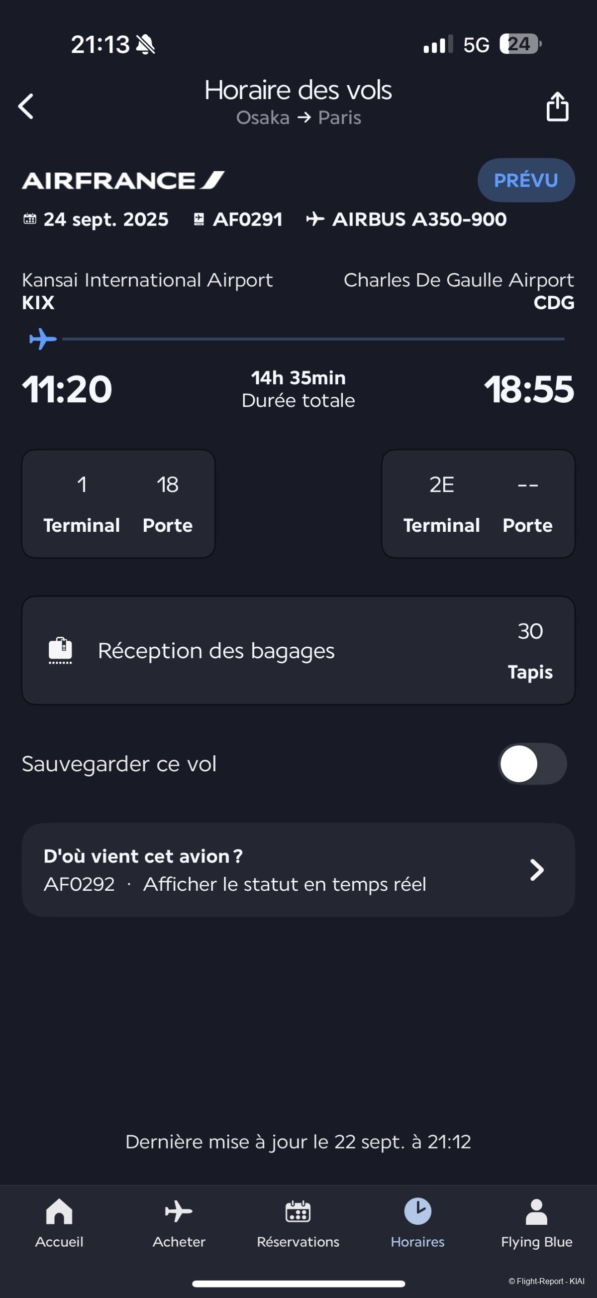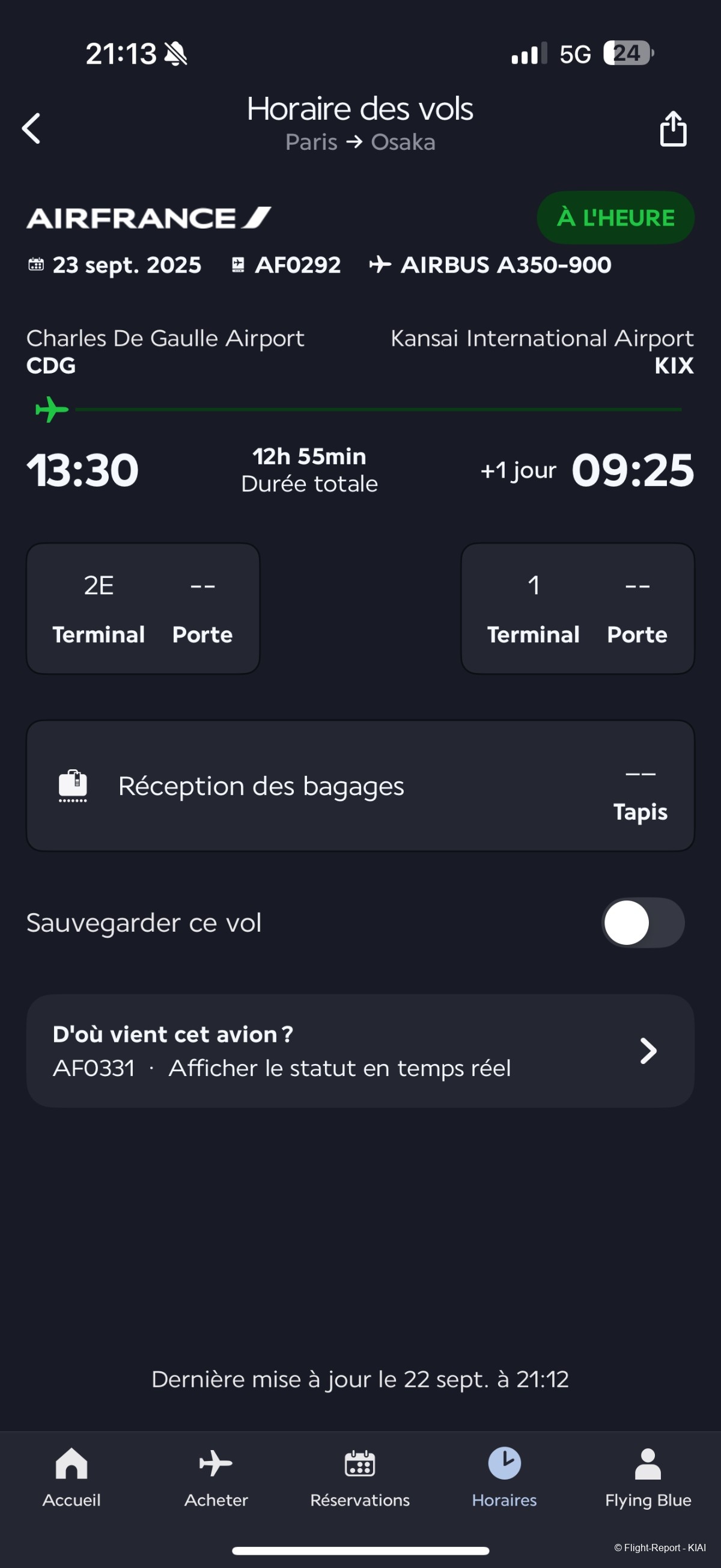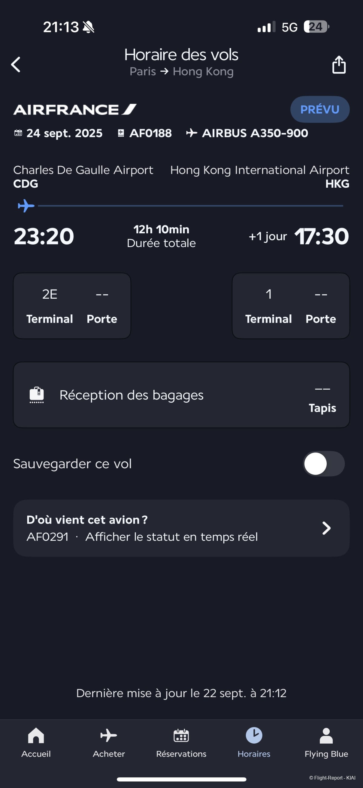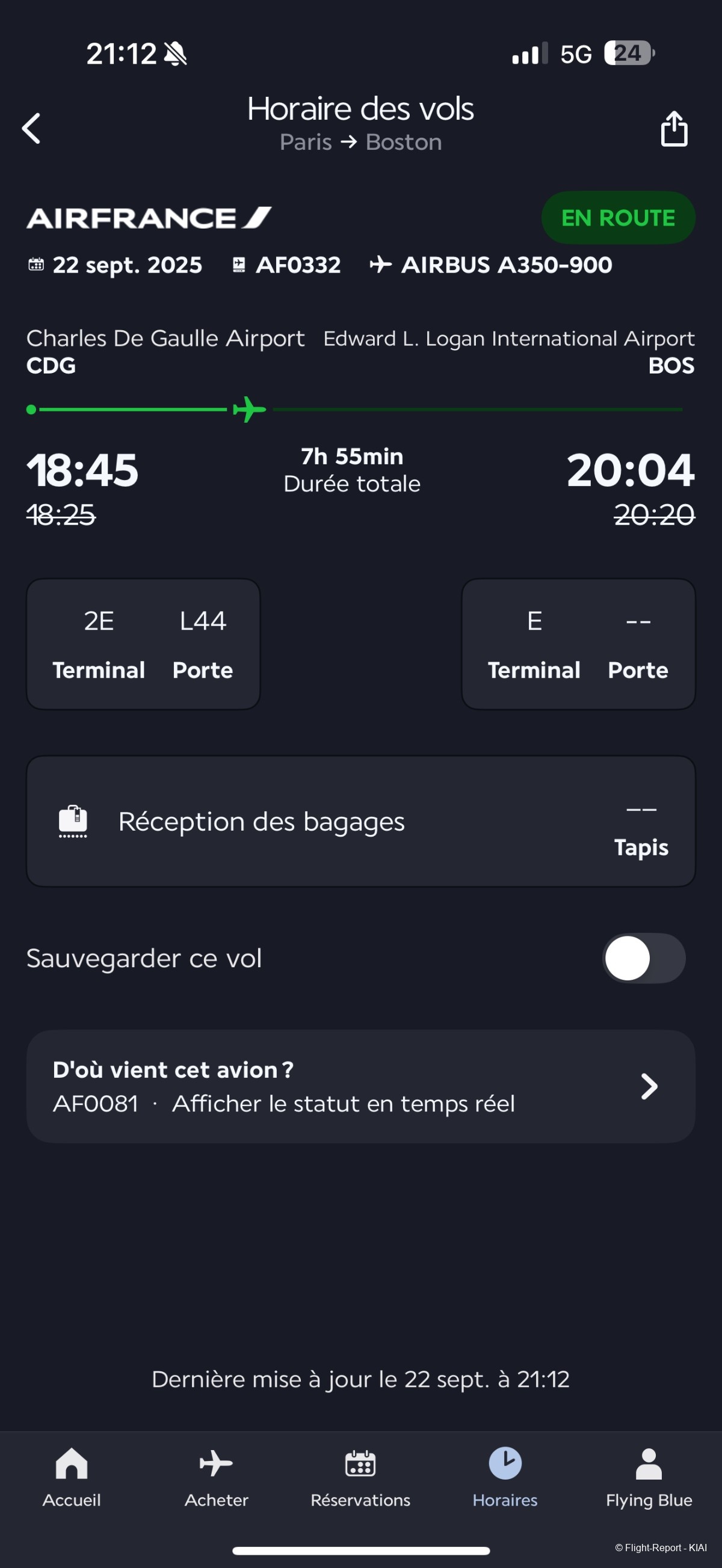 Sur le plan opérationnel, cela a entraîné l’annulation ou le report des vols des 22 et 23 septembre, tandis que le vol du 24 septembre (indicatif A188A) a décollé plus tôt dans la journée du vol que je vous présente ici.