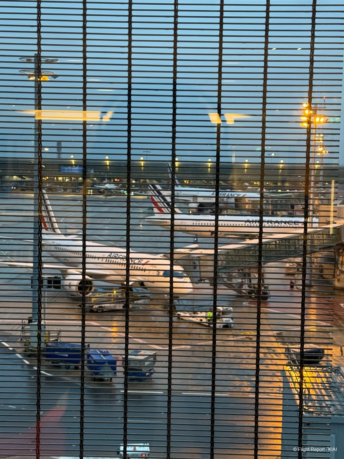 Sous une pluie battante, je me rends à l’aéroport Charles de Gaulle en empruntant le RER, qui ne connaît pas de problème majeur cette fois, contrairement à la journée d'hier (23 Sept).
