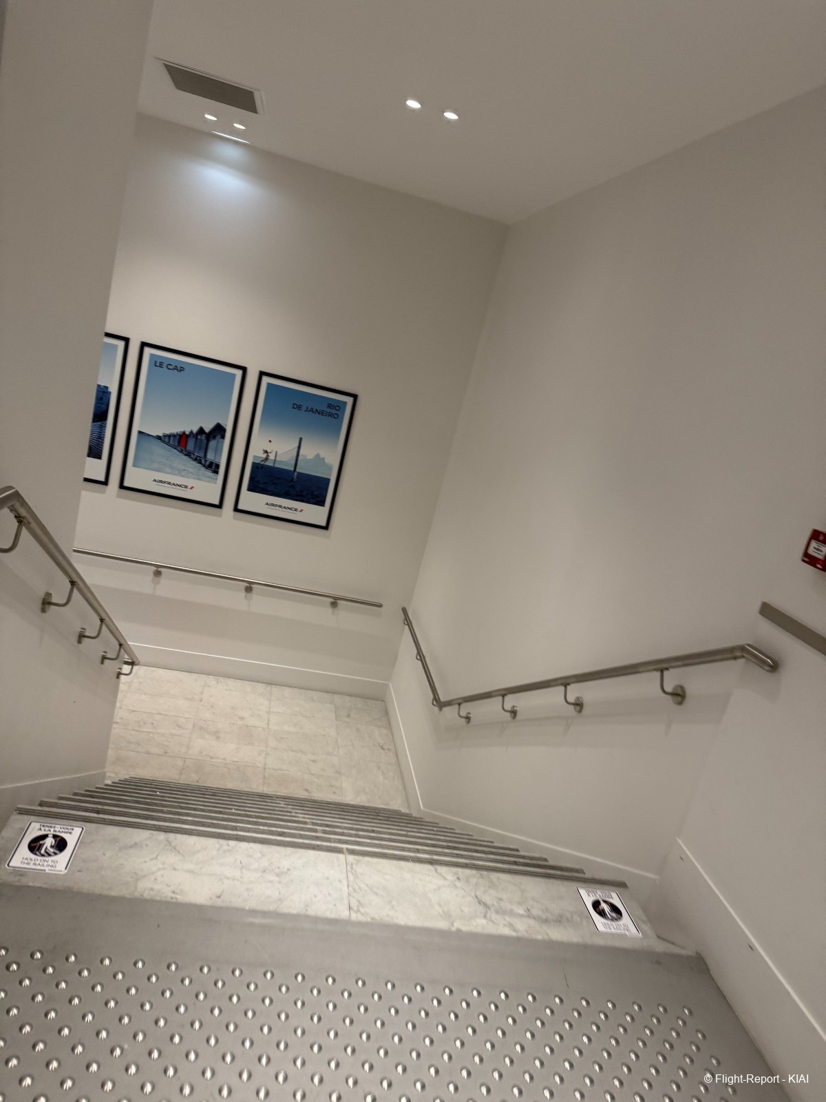 Continuons avec une photo de l’hippocampe ailé, suivie d’une vue vers la baie vitrée où l’on peut apercevoir des A220 et A320 d’Air France.