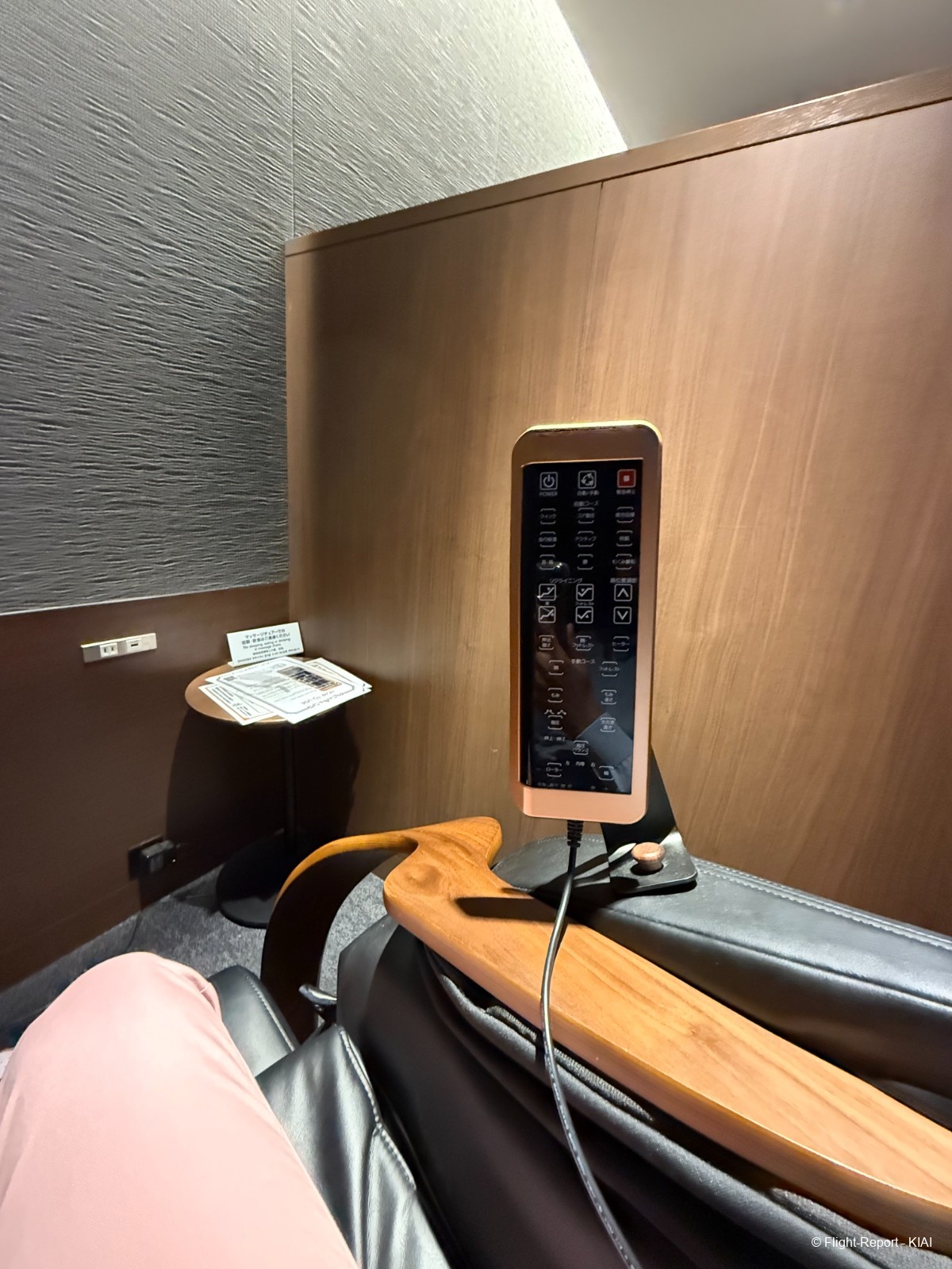 Le Sakura Lounge dispose de plusieurs box téléphoniques et d'un coin relaxation avec des fauteuils massants.