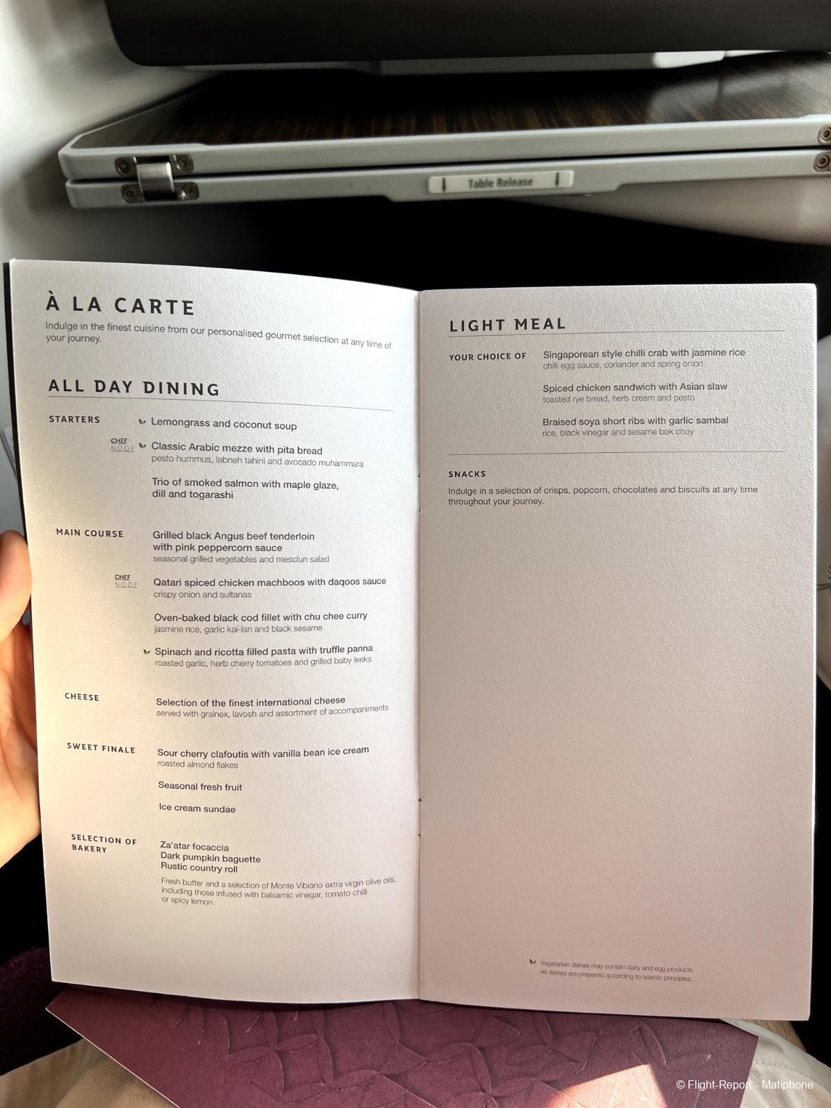 Il y a de l'espace dans cette cabine. Ce n'est pas la QSuite mais ça me plaît ! C'est lumineux, la tablette est amplement suffisante malgré la table dressée et non un service au plateau.