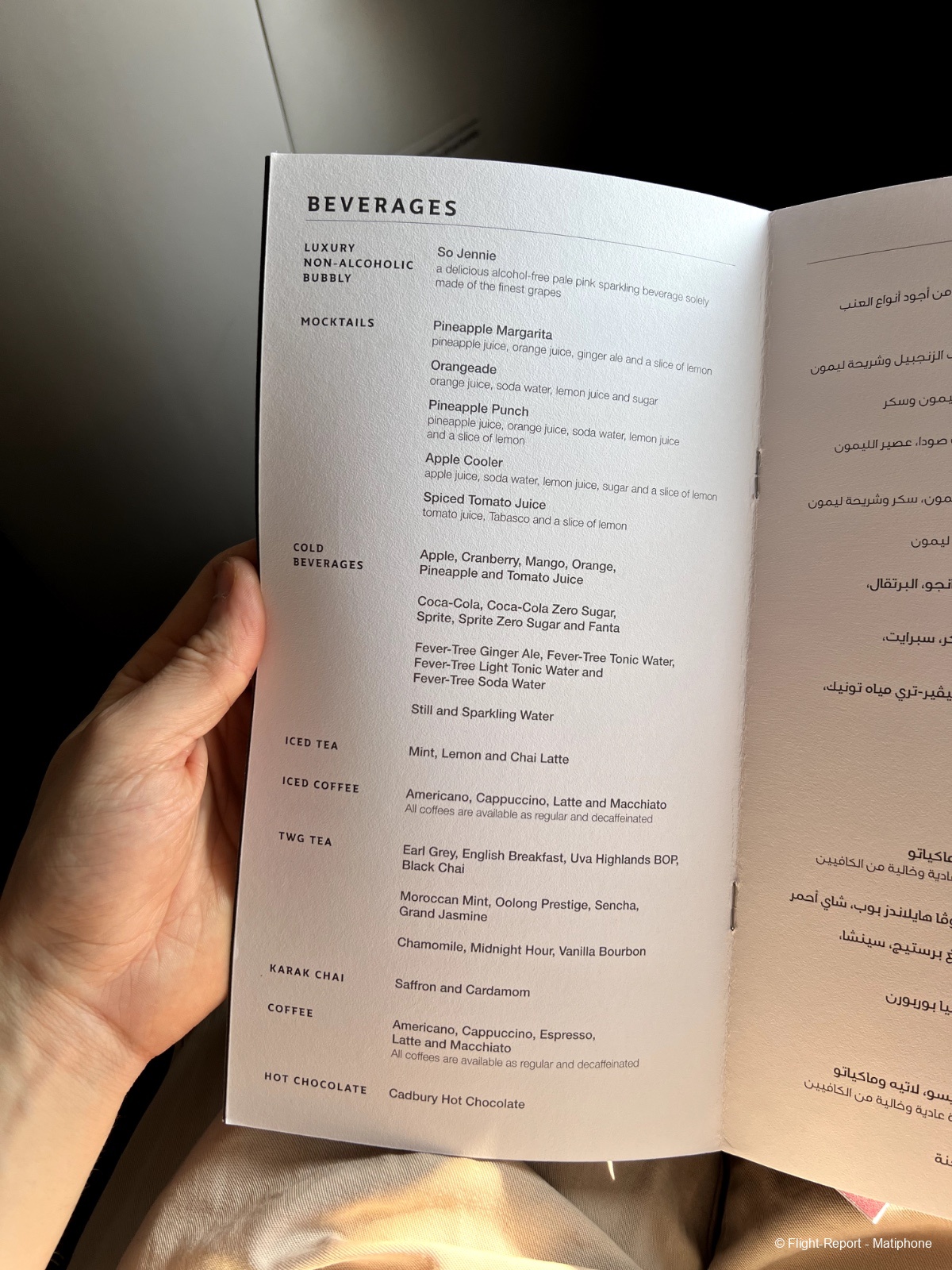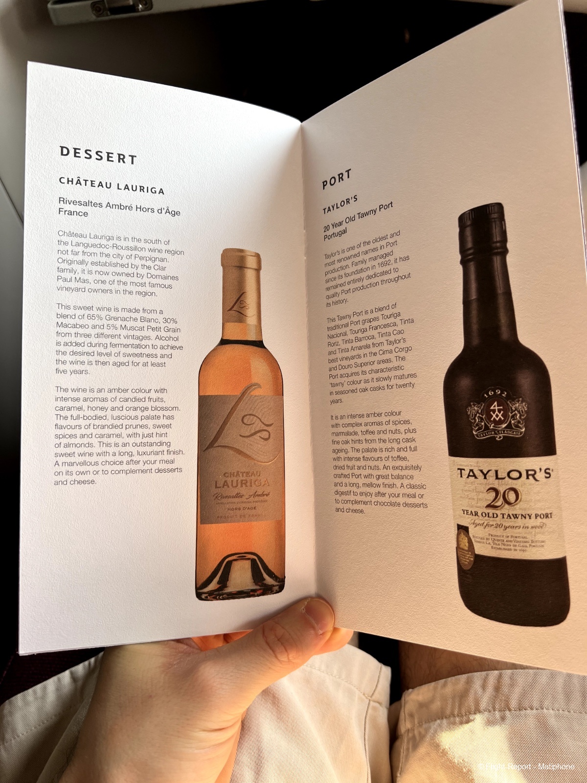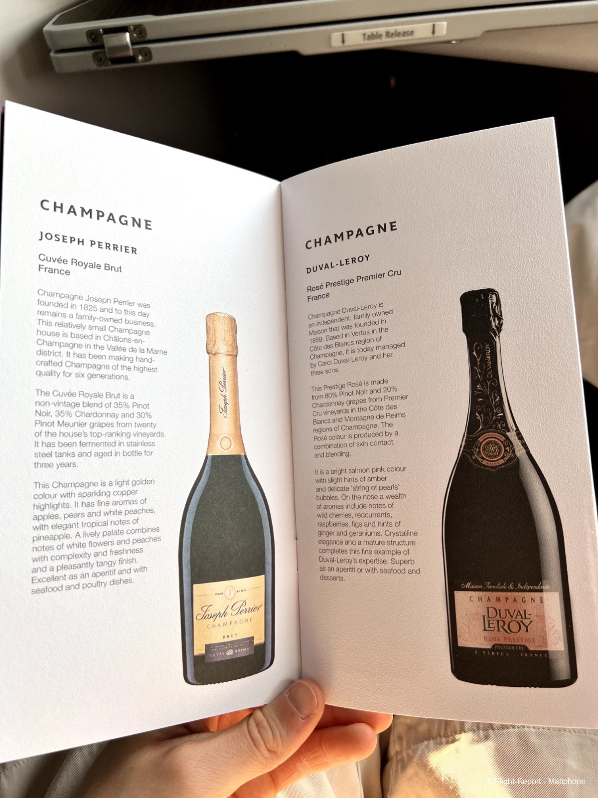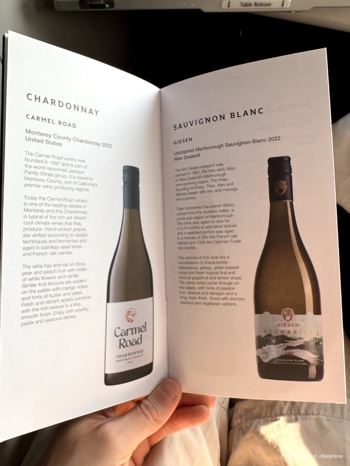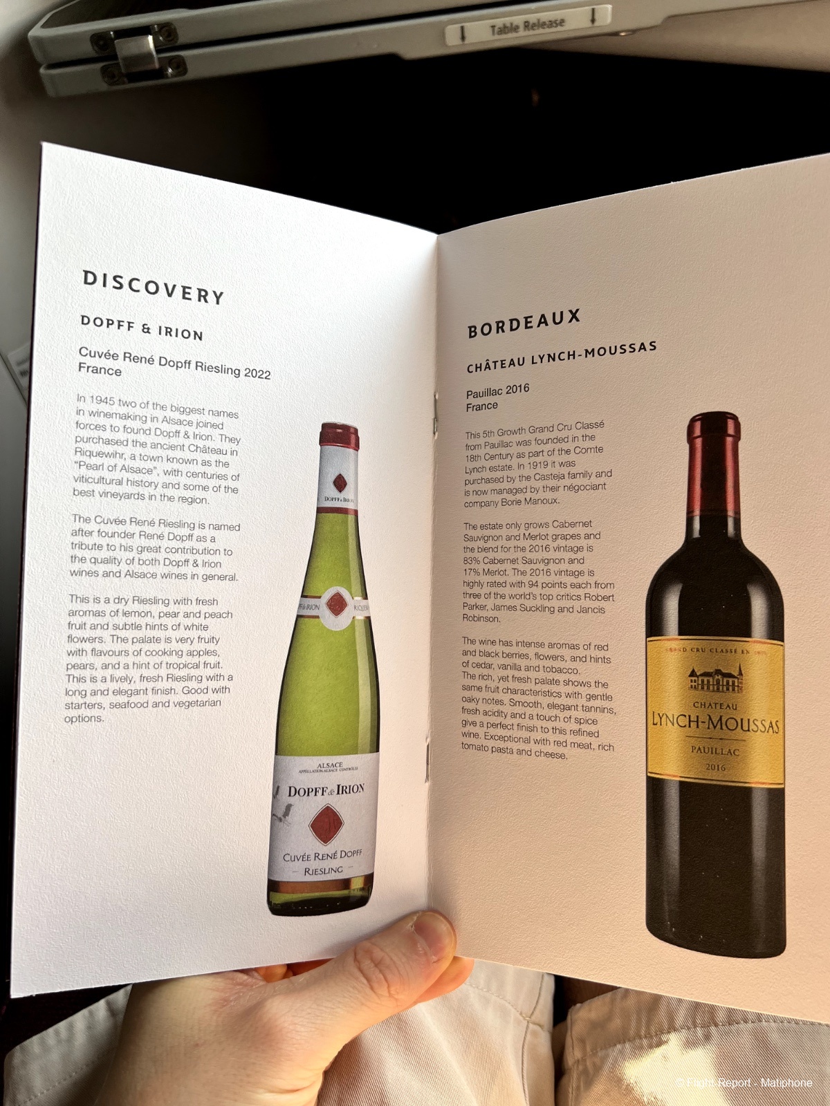 Le menu est dans la même lignée que le vol aller, et la cave est identique.