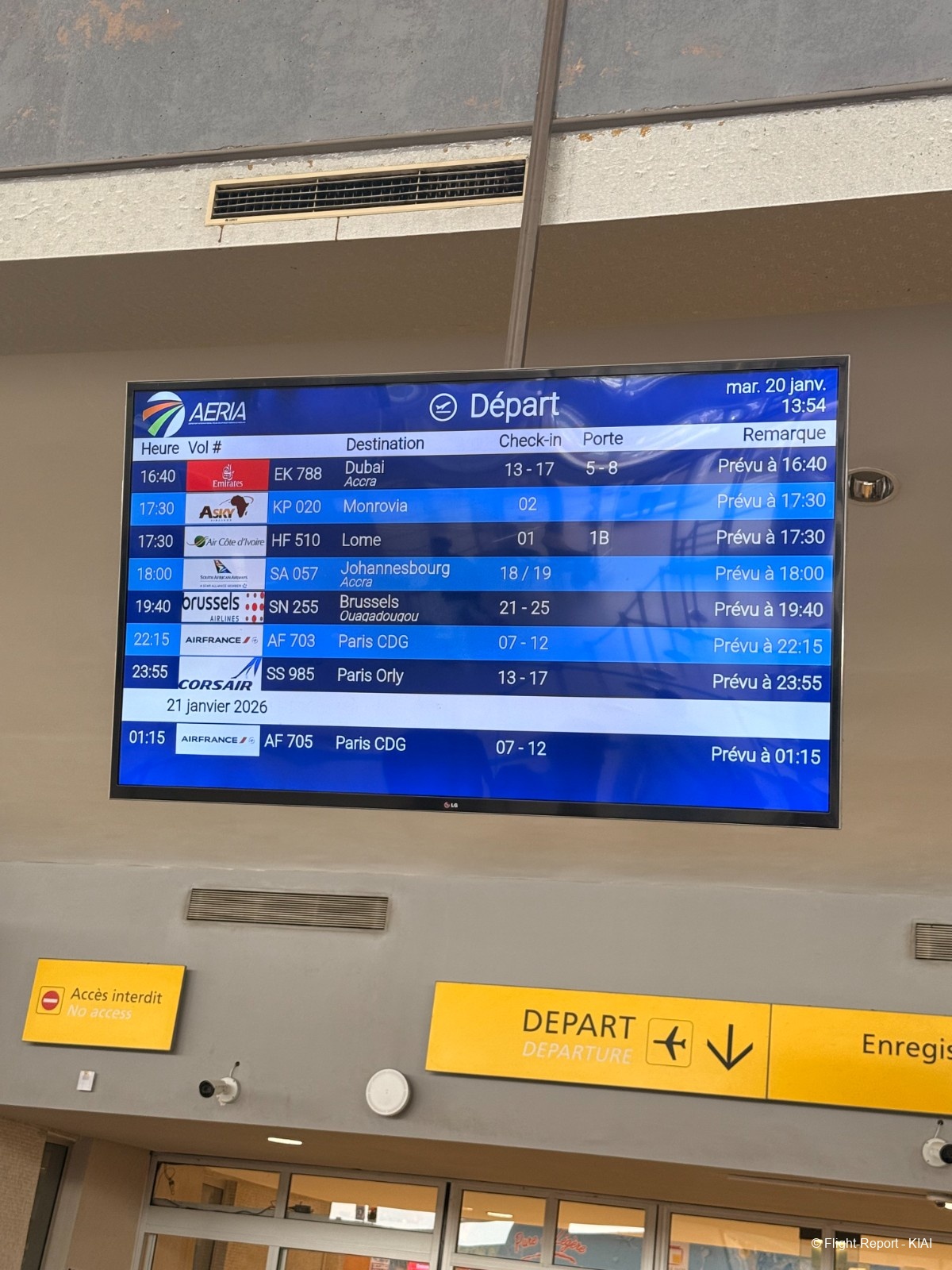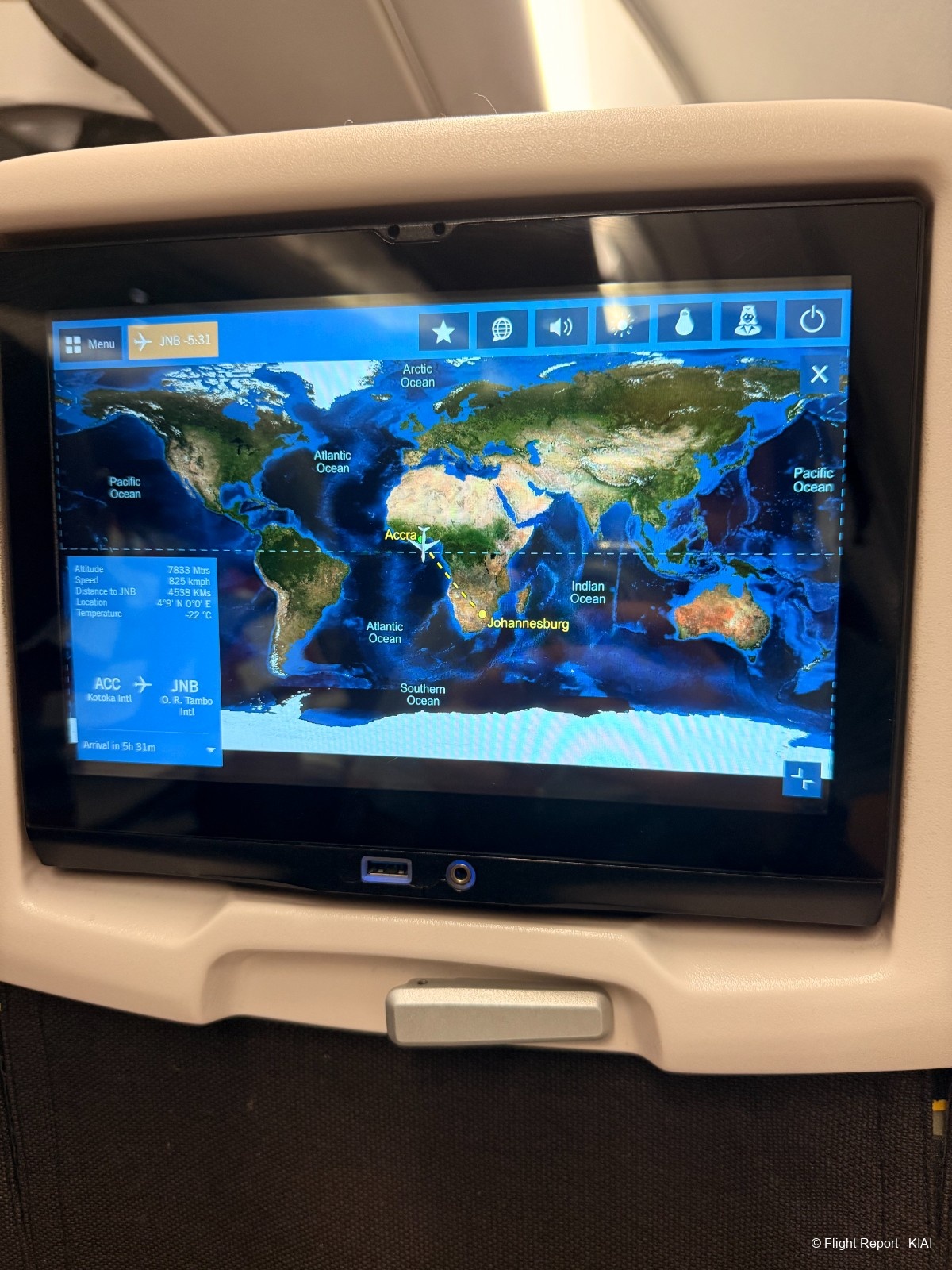 L'IFE (système de divertissement en vol) était inopérant sur tous les sièges, jusqu'à Accra.