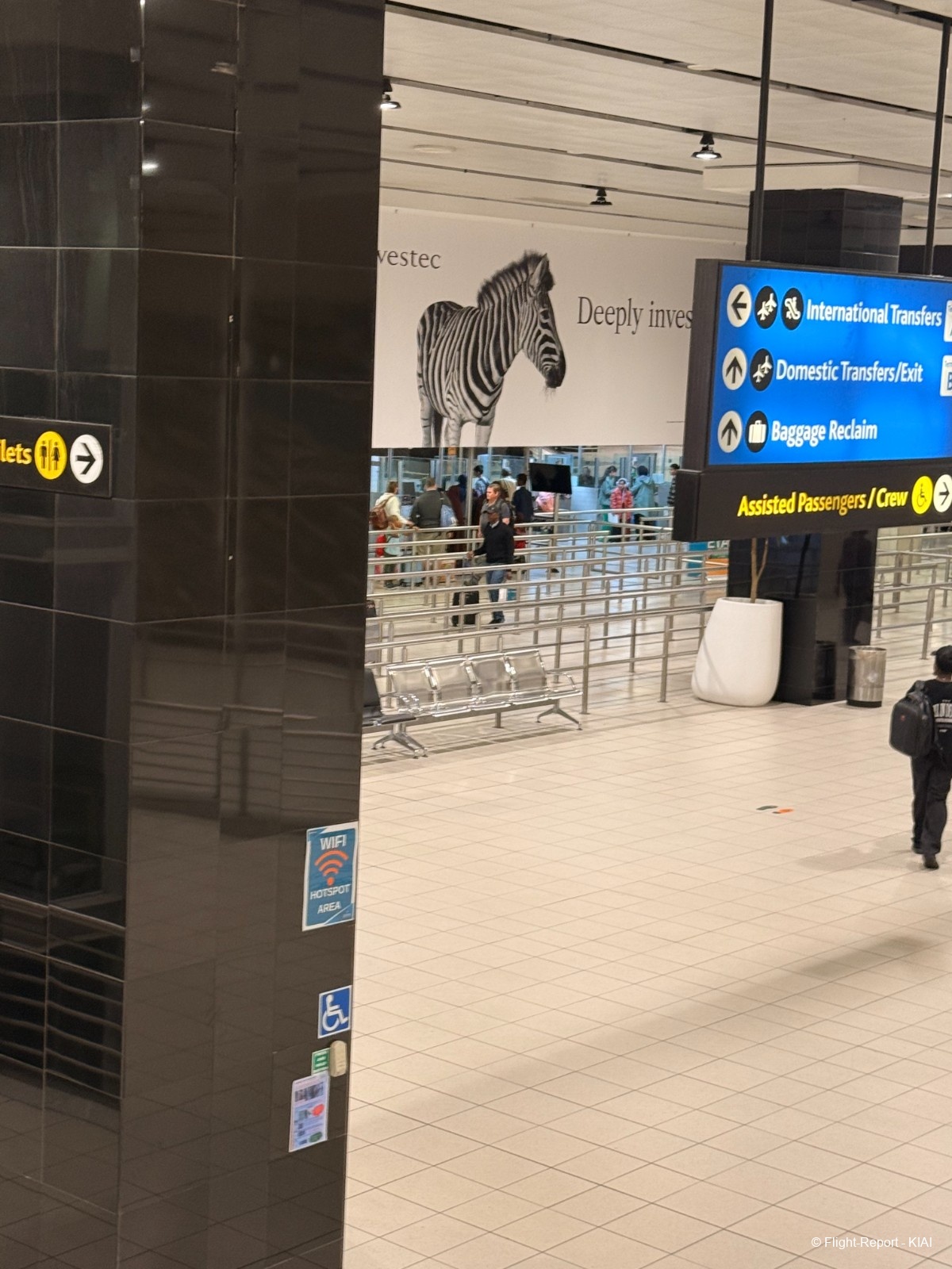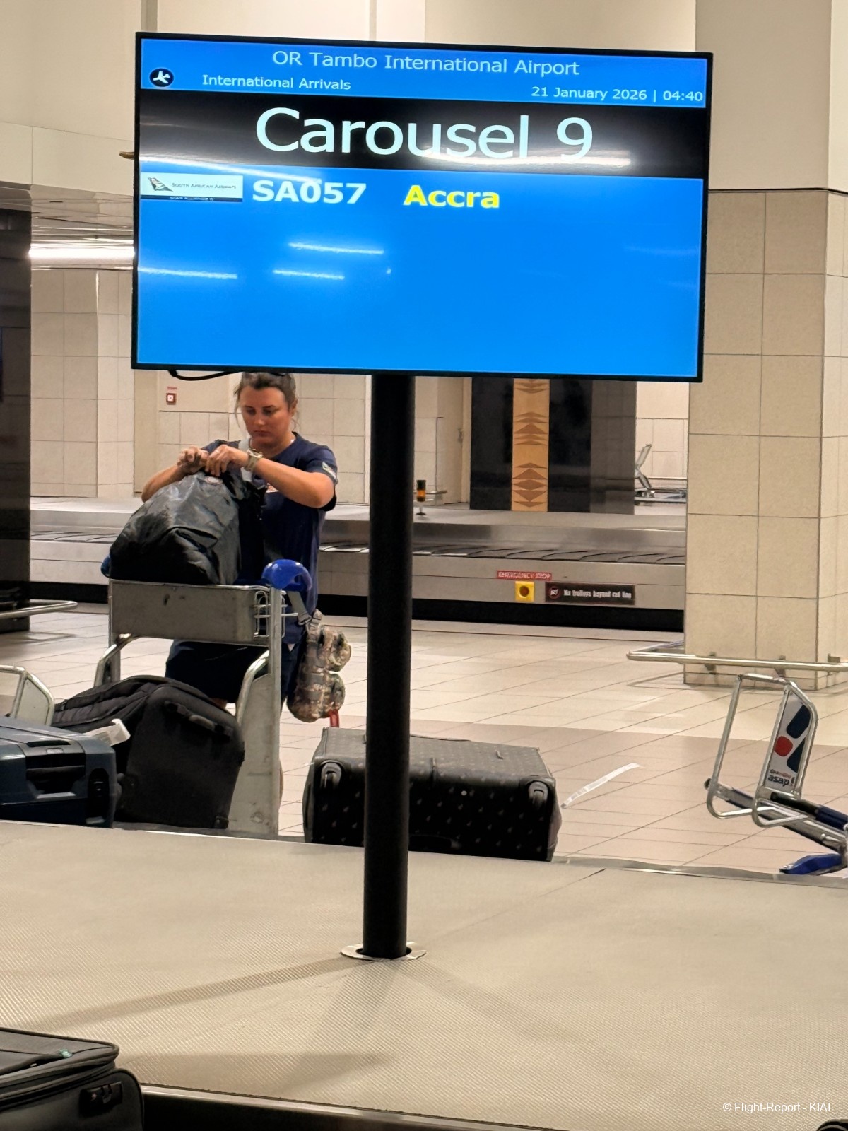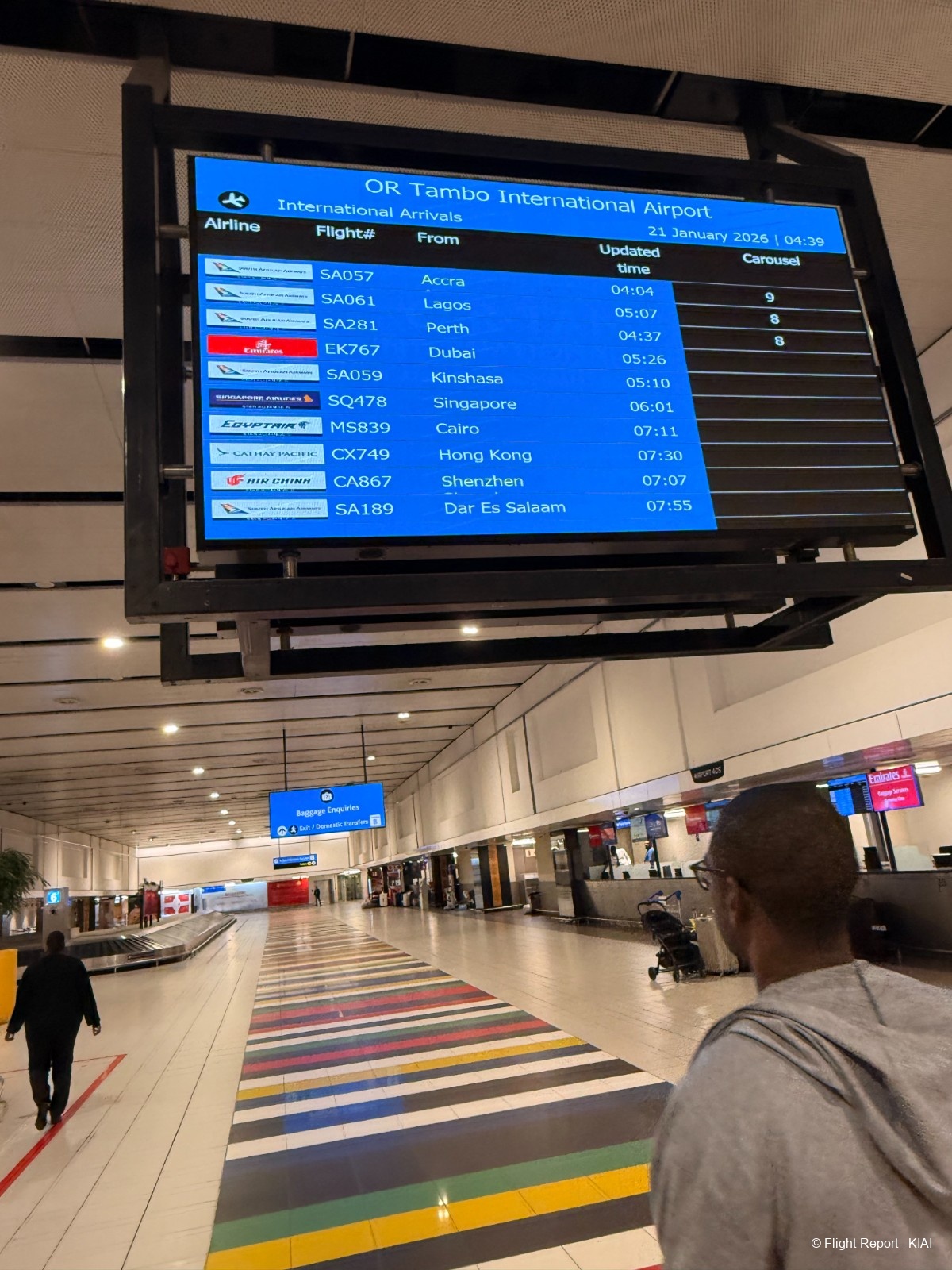 L'instant porte est arrivé, et il est temps de récupérer mes bagages, comme indiqué sur le panneau, avant de les redéposer pour mon vol vers Cape Town.
