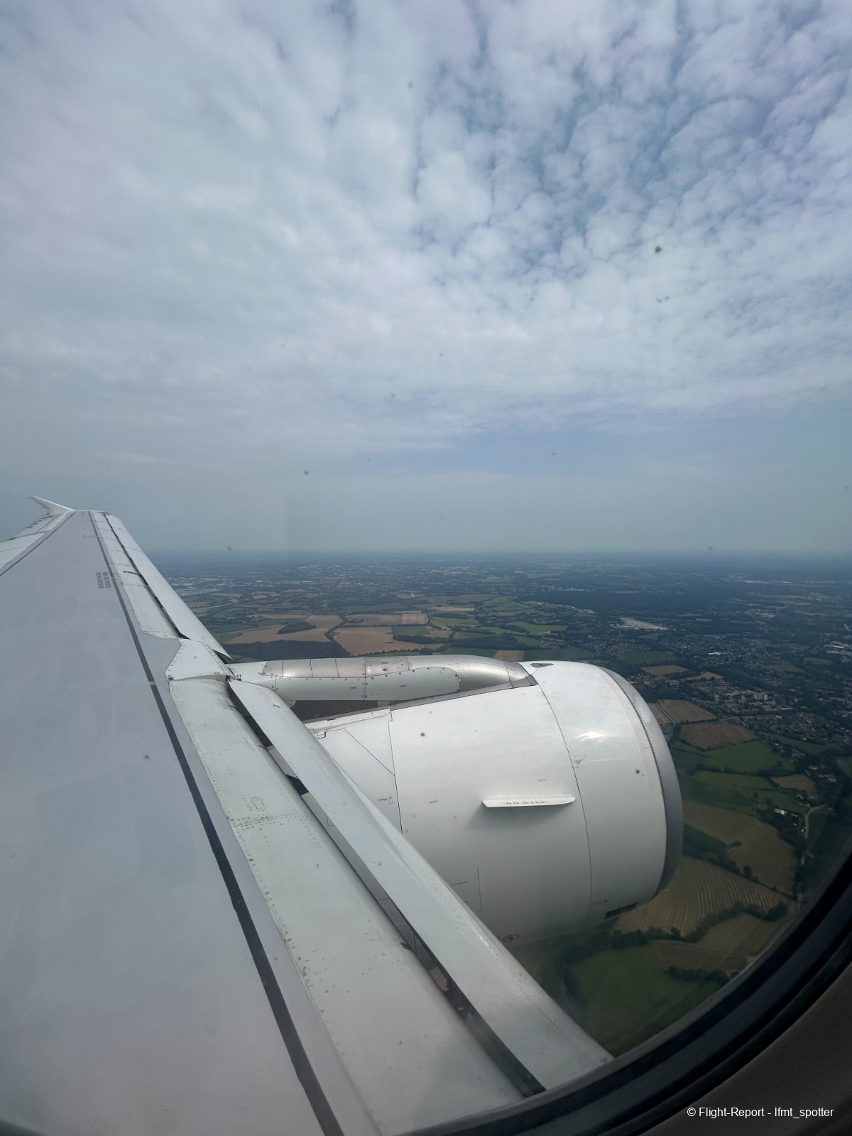 La vitre n'est pas des plus propres, mais permet quand même d'admirer ce robuste CFM56. Les PNC sont lâchés 5 minutes après le décollage.