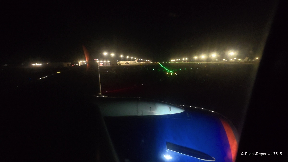 Les CFM56 sont démarrés et c'est parti. Il est 23h38. 4 minutes de roulage seront nécessaires pour rejoindre la piste.