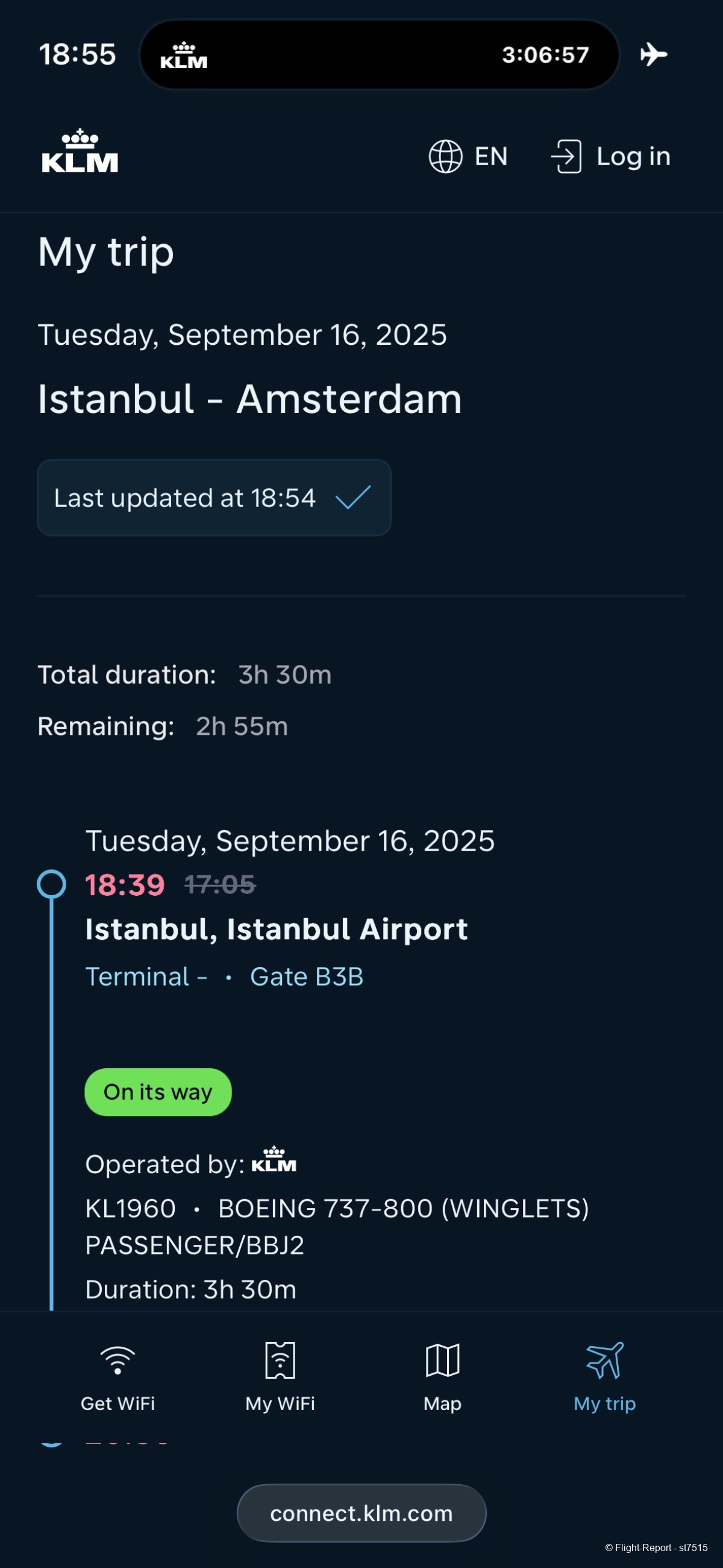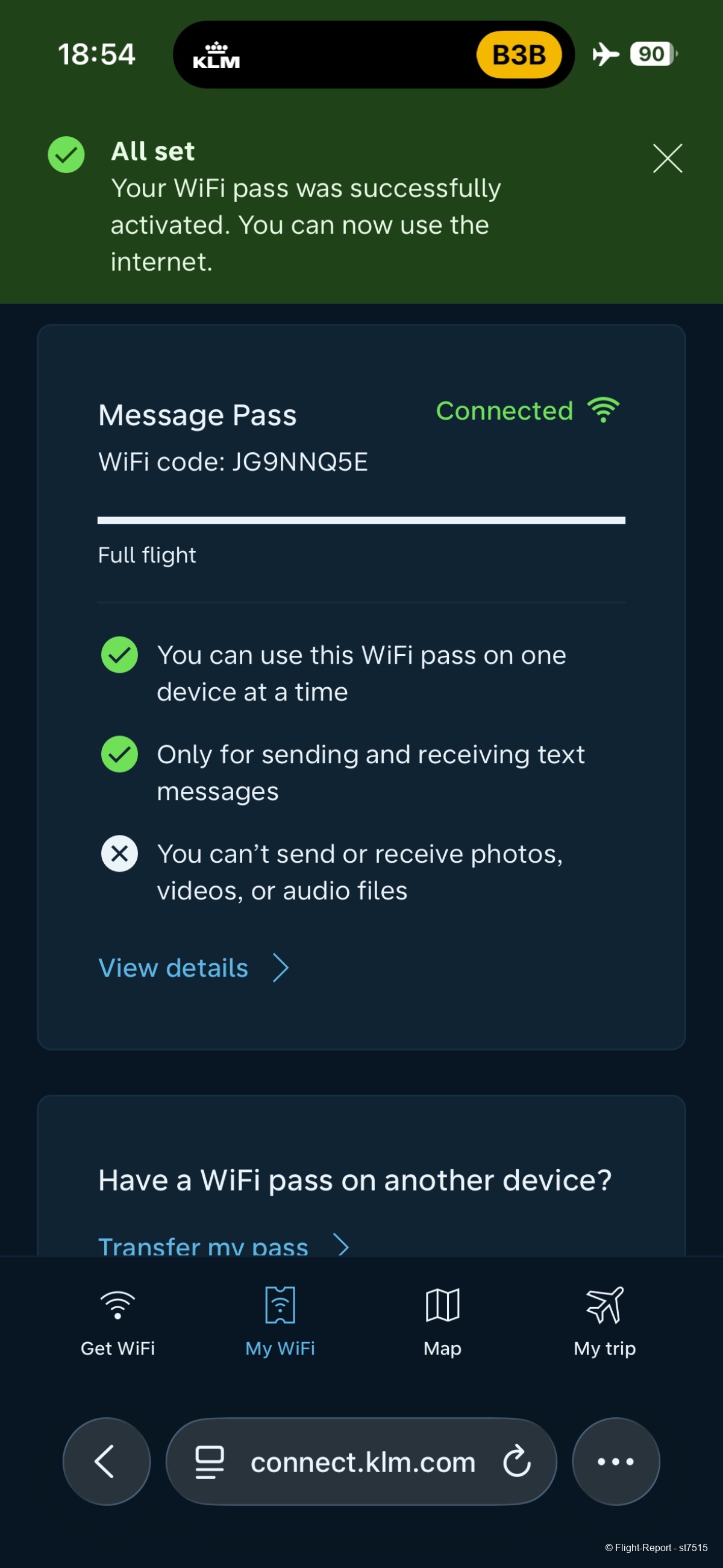 Pendant tout le vol (sauf au début car tout le monde s'est précipité dessus donc plus assez de bande passante), nous avons pu suivre les changements des horaires de vol grâce au wifi gratuit (messages et applications AF / KL).