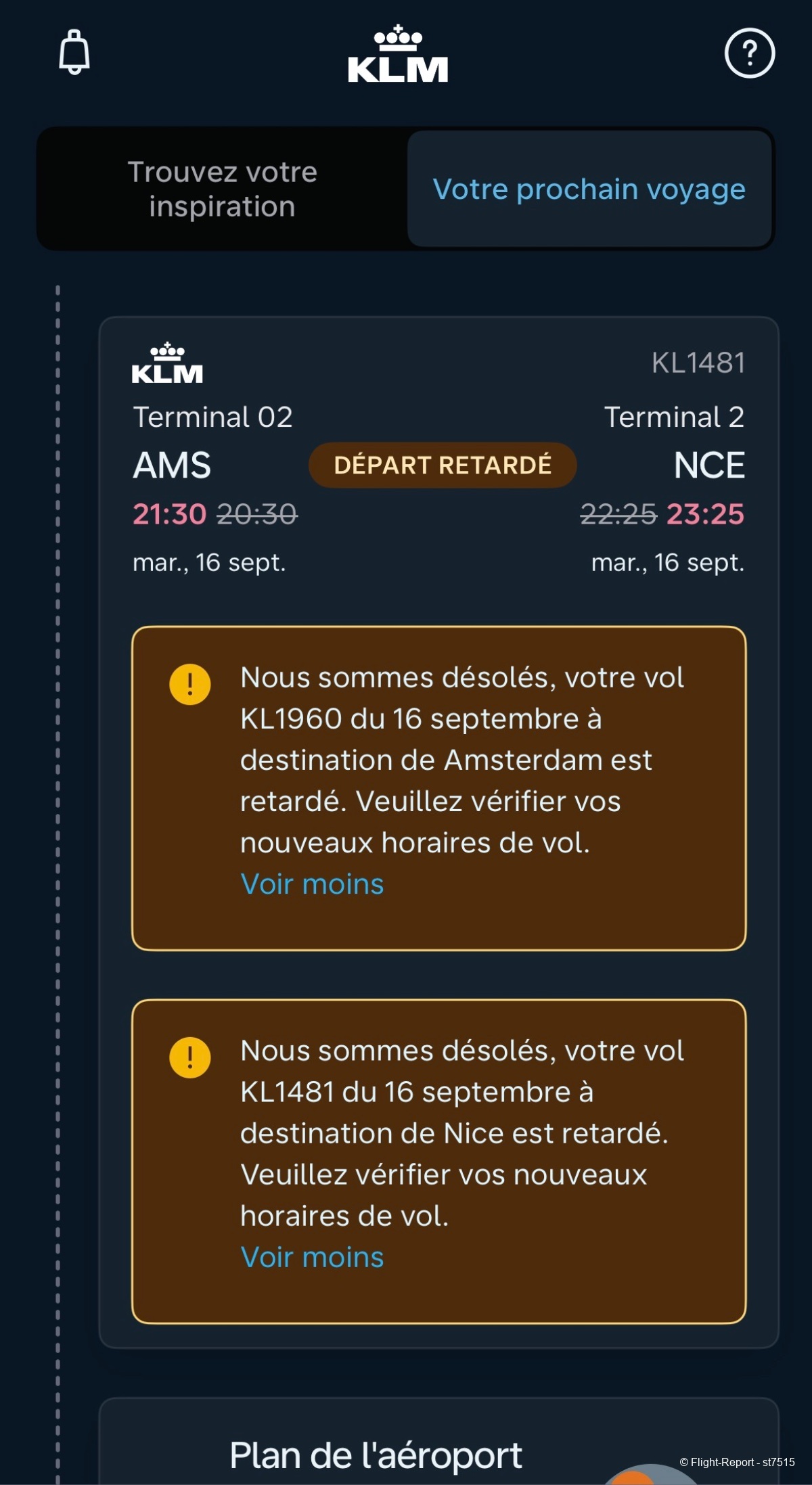 Au passage, belle intégration de l'application KLM sur iOS avec affichage de porte puis temps de vol restant dans la Dynamic Island.